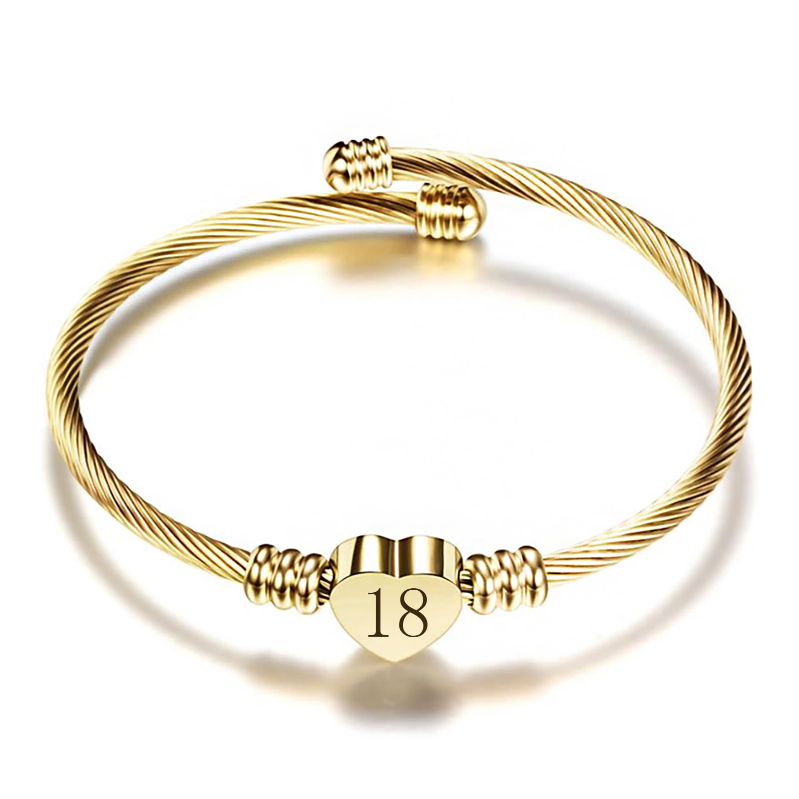 Heart Love 13 15 16 18 21 30 40 50 60 65 70 Pulseras de cumpleaños para mujer, pulseras expandibles de acero inoxidable con números dorados