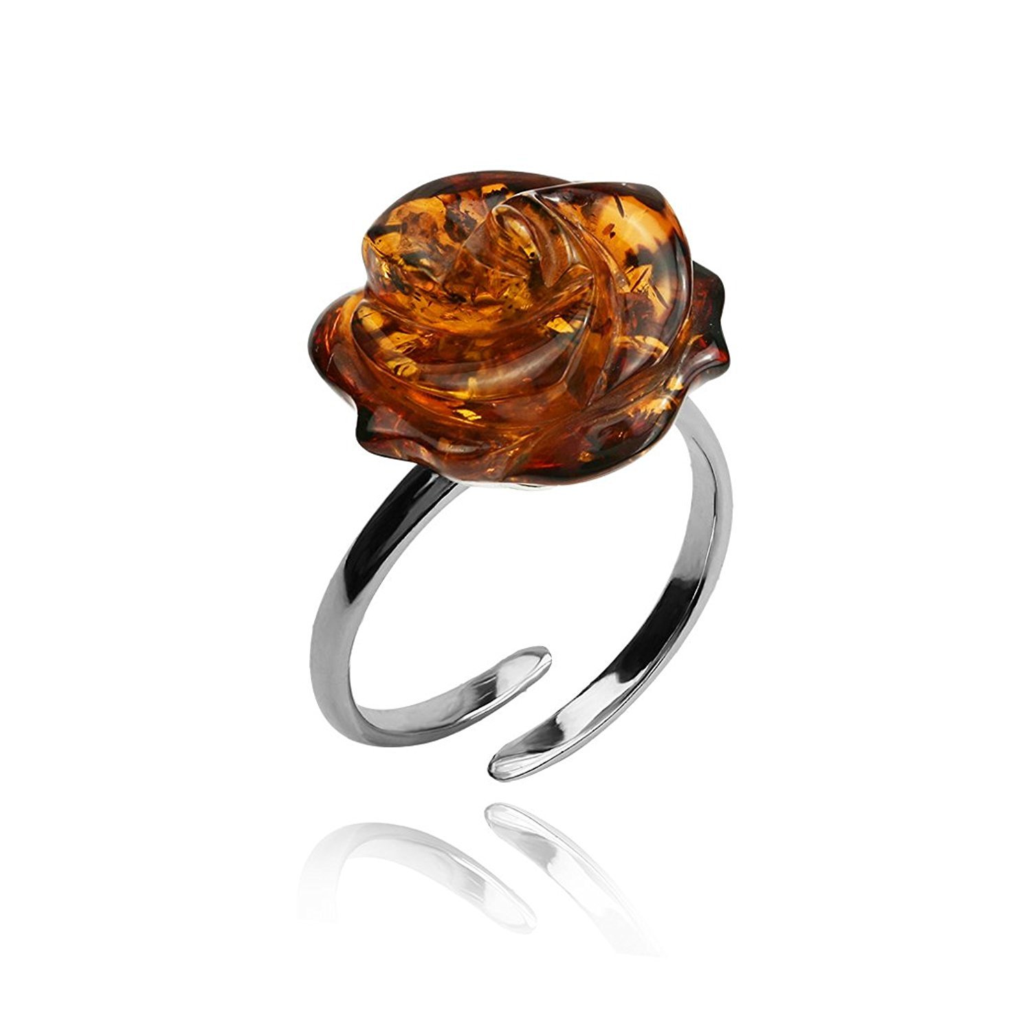 Ian and Valeri Co. Amber Sterling Silver Rose Adjustable Ring