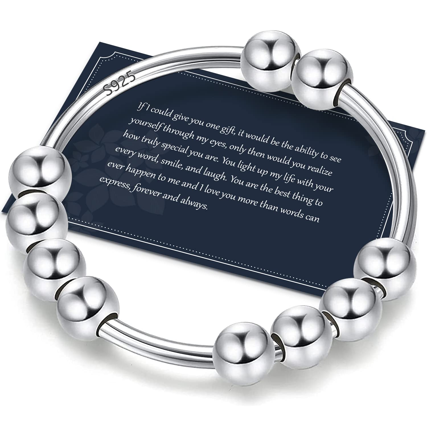 J.Fée Fidget Ring for Anxiety with Beads, Anxiety Ring 925 Sterling Silver Rings for Women, Anti Anxiety Ring for Women, Thumb Ring Spinner Rings for her, Gifts for Her and Him