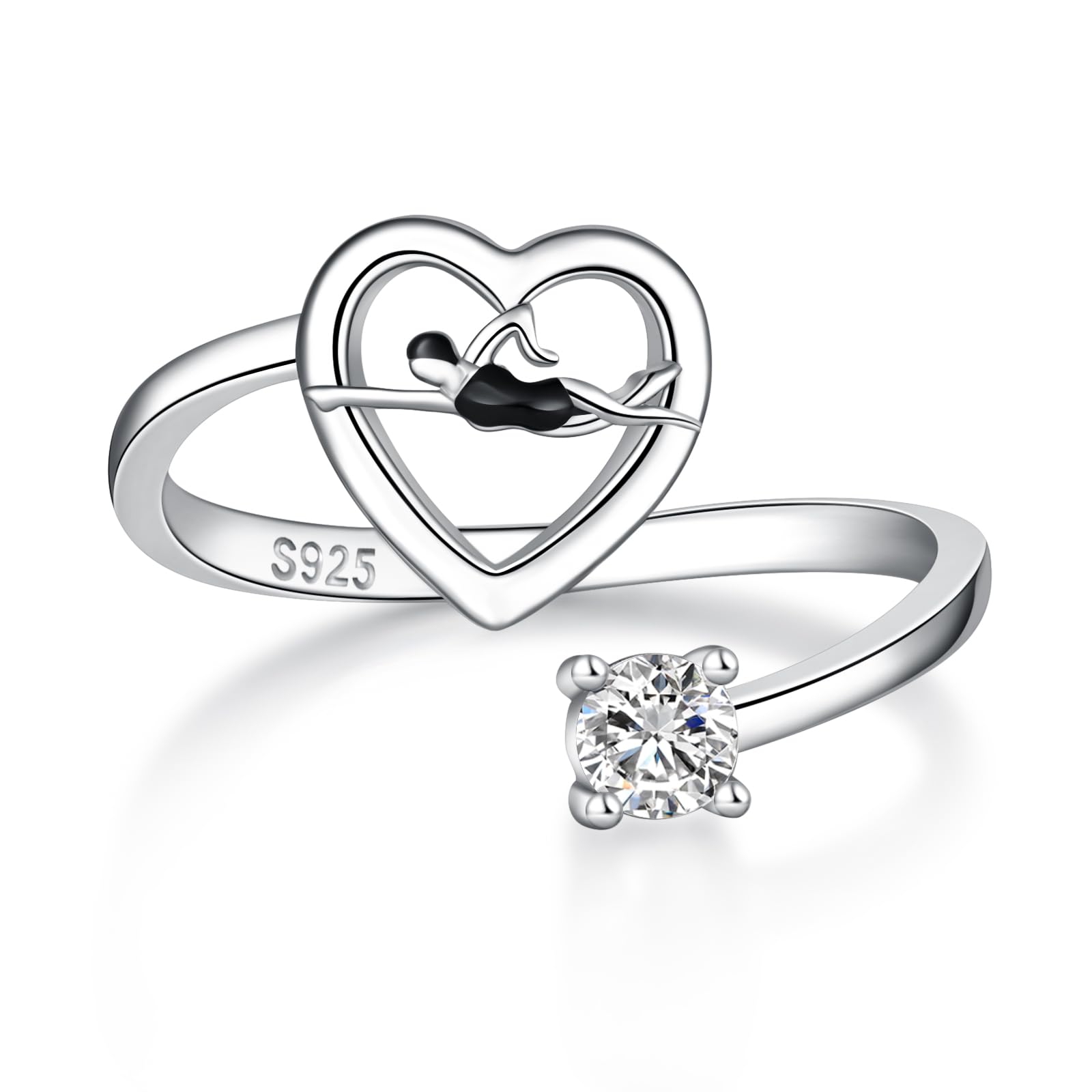 Joyería de natación de plata de ley 925 con colgante de natación, anillos, arete, pulsera para amantes de la natación y mujeres