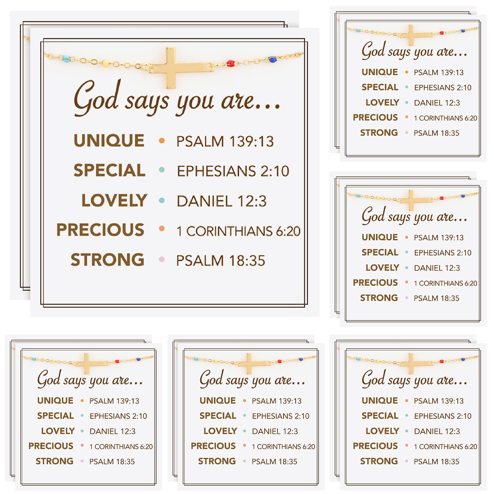 Juego de 12 pulseras de cruz coloridas con tarjetas para mujer de la iglesia, regalo religioso cristiano, pulseras inspiradoras para el personal de los empleados, recuerdos de fiesta,