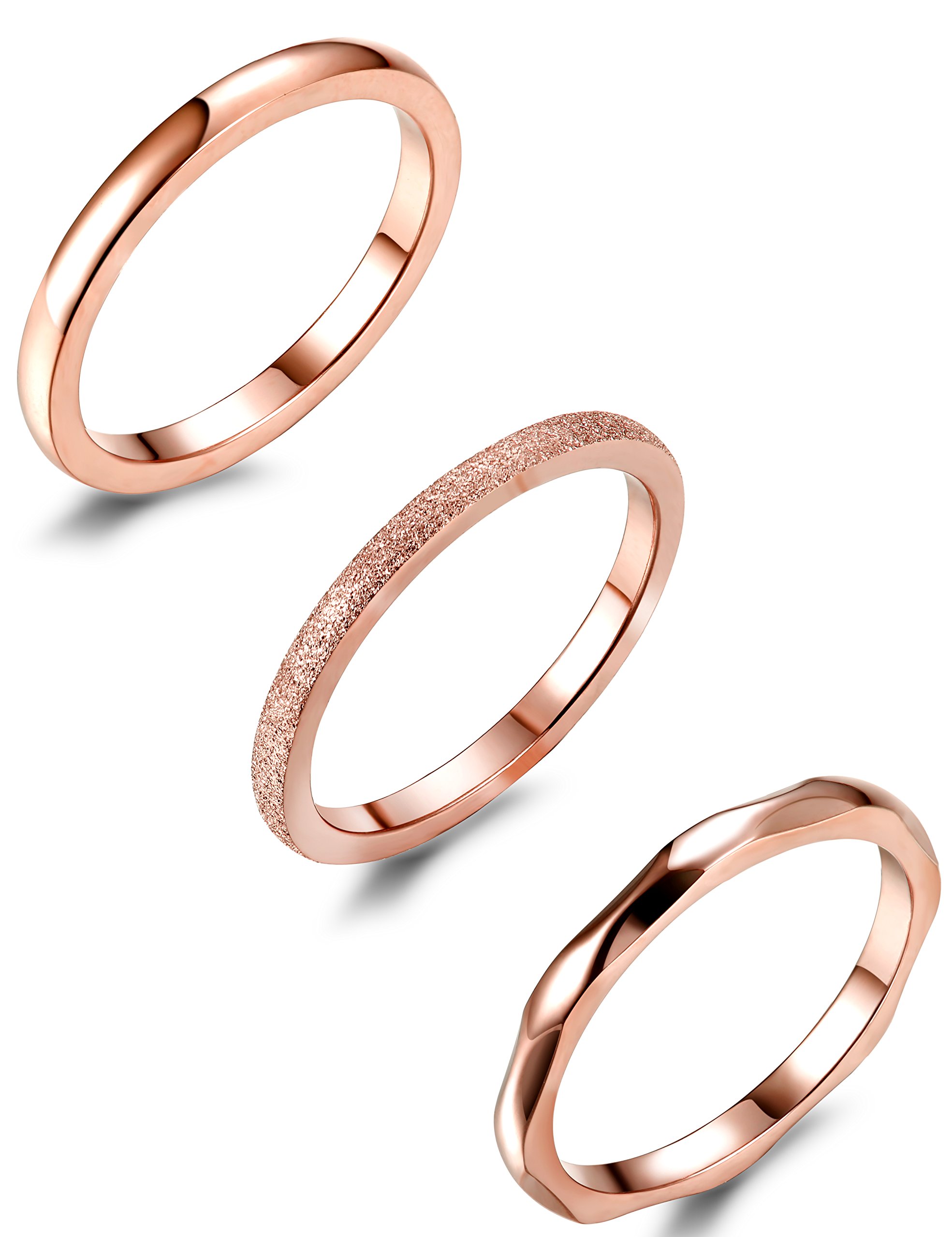 Juego de 3 anillos de eternidad apilables de acero inoxidable de 2 mm para mujer, 4-9