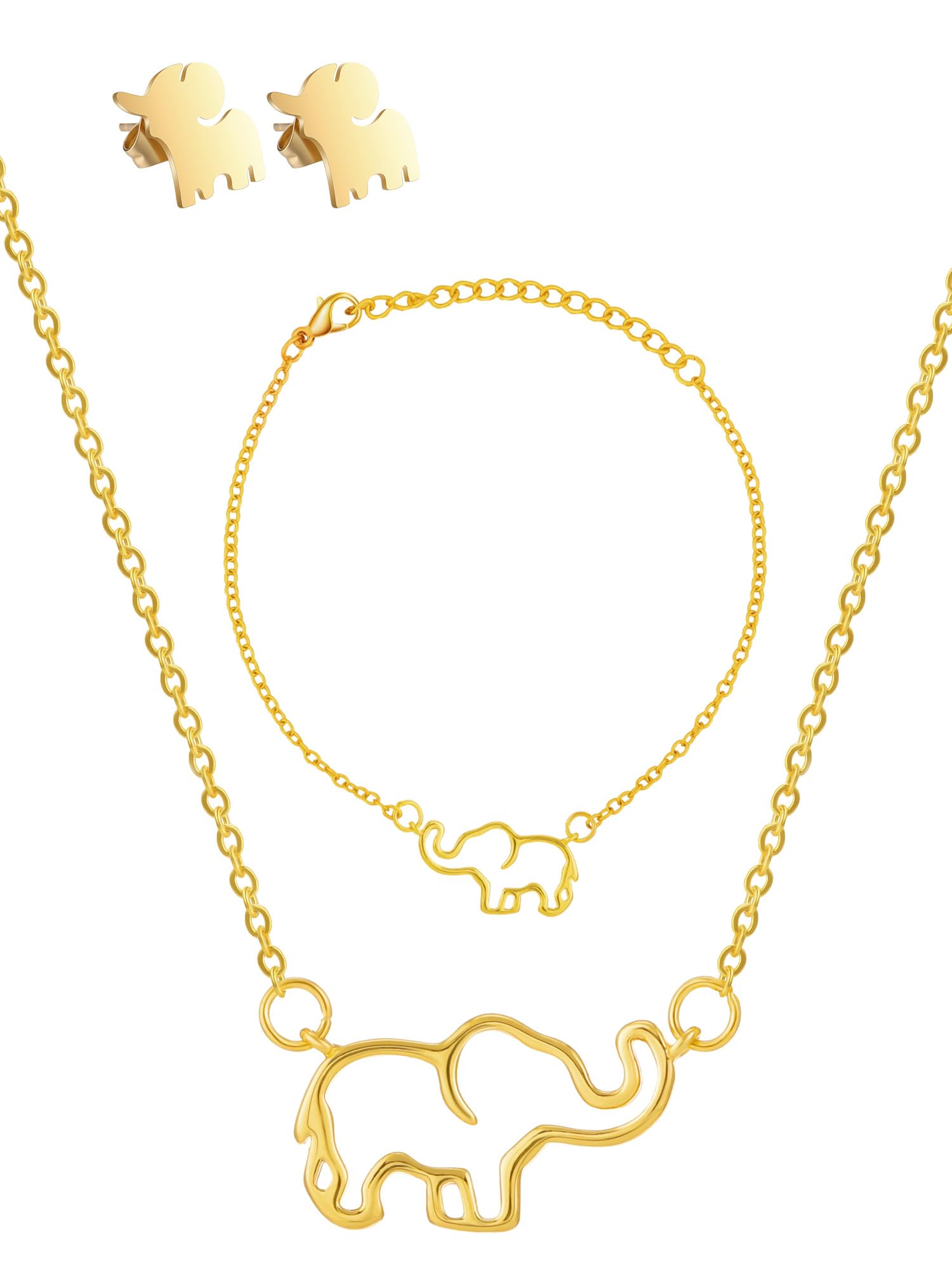 Juego de 3 piezas de regalo para el día de la madre para mujer, esposa, elefante, chapado en oro, collar de elefante de 14 quilates y aretes de elefante de 18 quilates con caja de regalo,