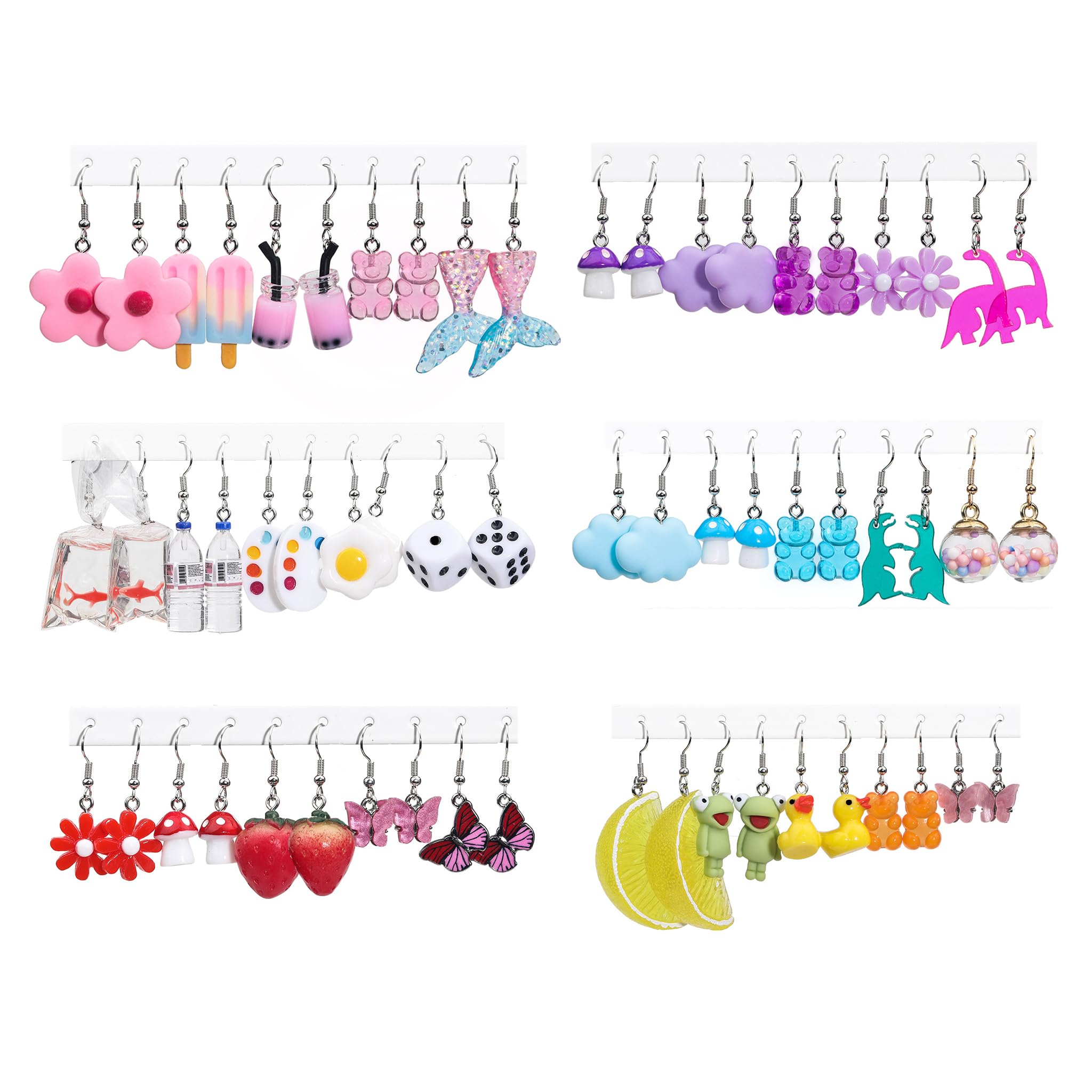 Juego de 30 pares de aretes extraños para mujer, paquete múltiple de bonitos arete, aretes divertidos de oso gomoso, aretes de hongos a granel