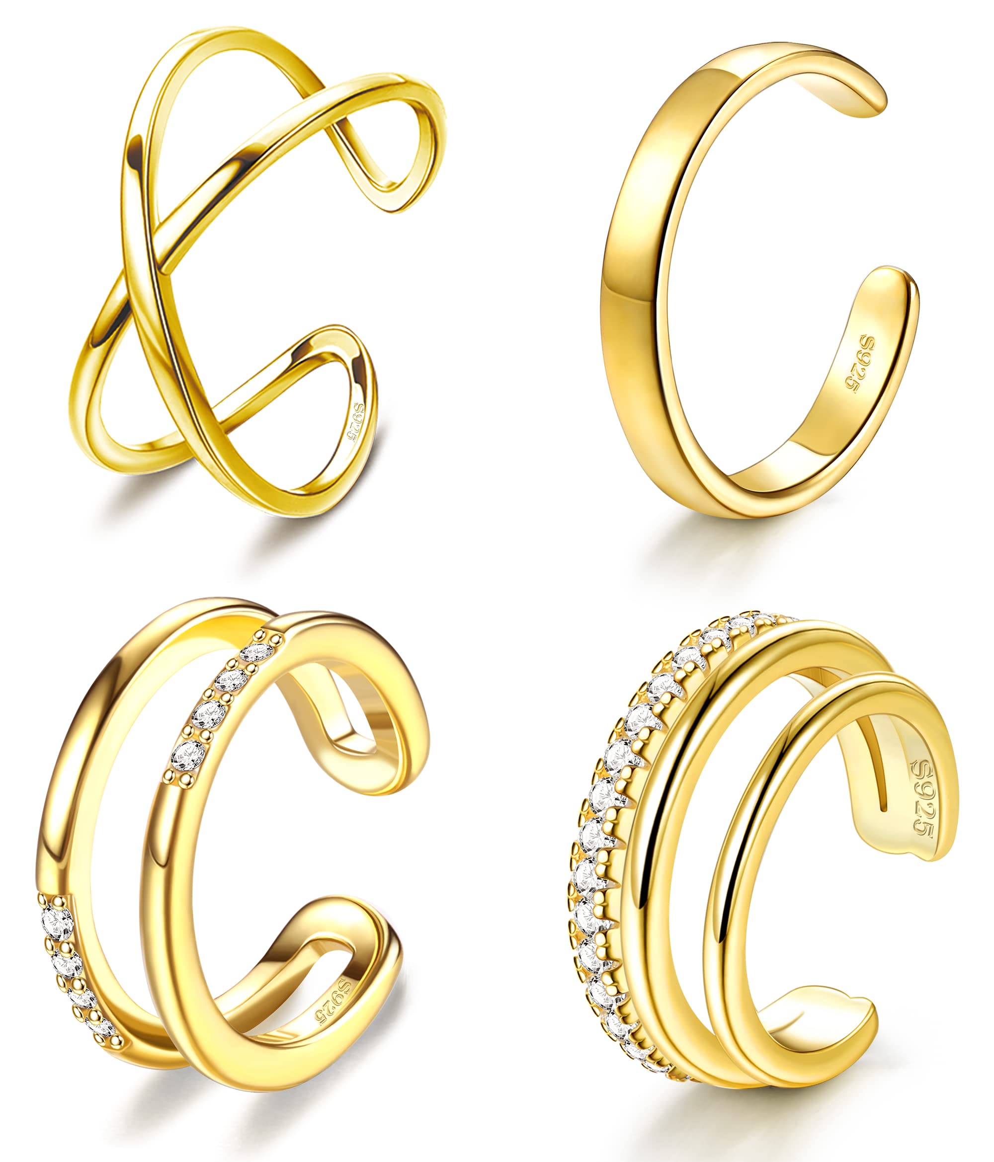 Juego de 4 aretes de plata de ley 925 para mujer, sin perforación, ajustables, con clip, para cartílago, hélice, para orejas
