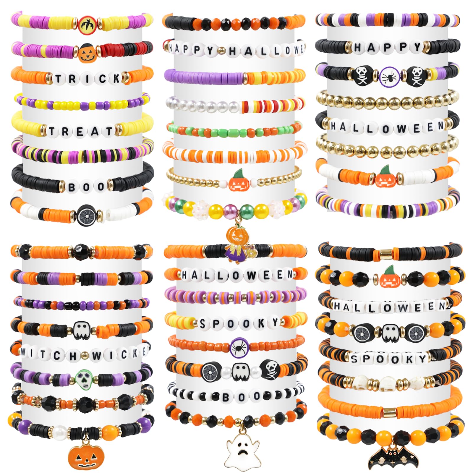 Juego de 48 pulseras festivas coloridas ajustables para la amistad, pulseras festivas a granel para mujer, pulsera de arcilla surfista Heishi para mujer, suministros de fiesta
