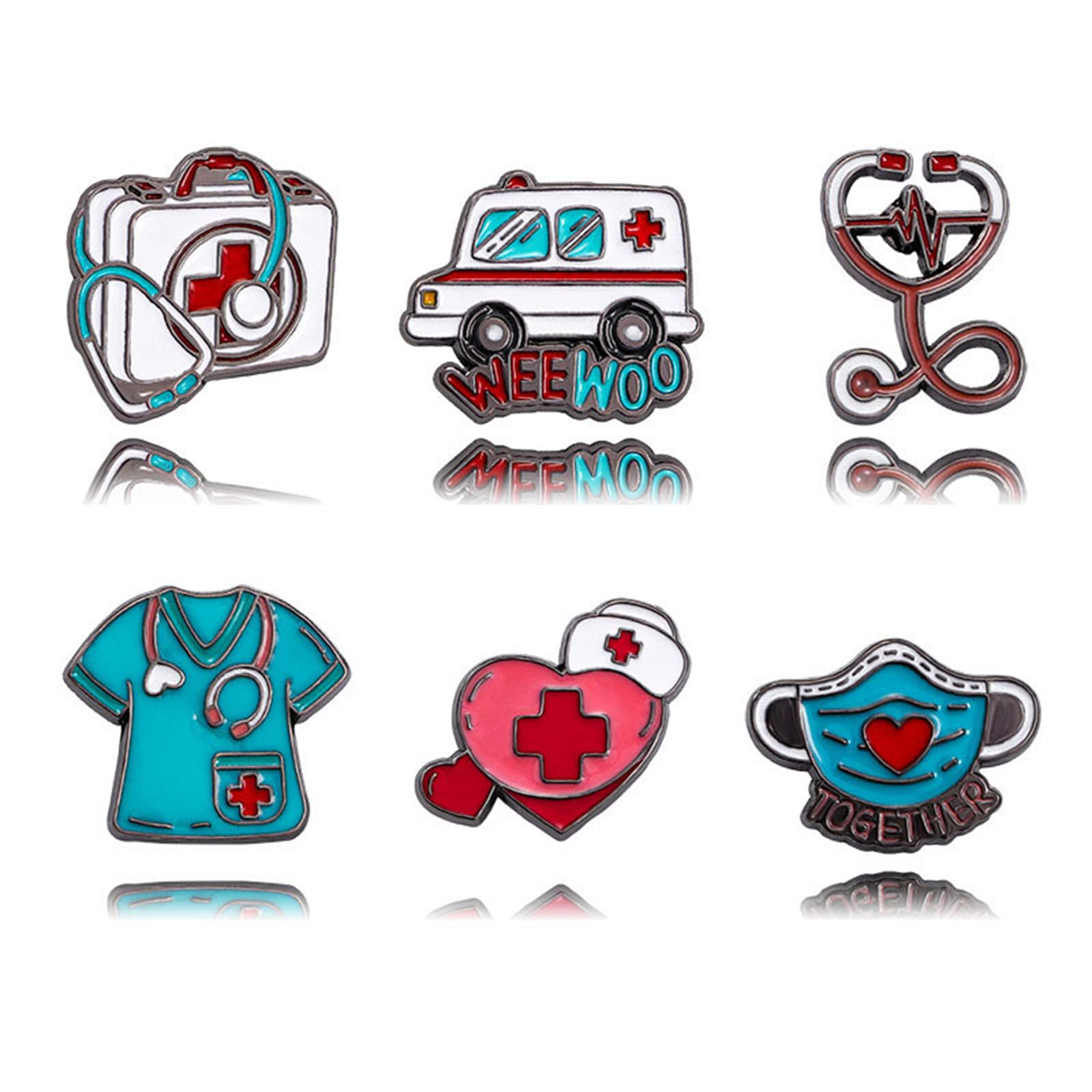 Juego de 6 pines de solapa esmaltados para médicos, enfermeras, lindos dibujos animados, estetoscopio, ambulancia, corazón, cruz, broches, médicos, estudiantes, ropa, accesorios, joyería