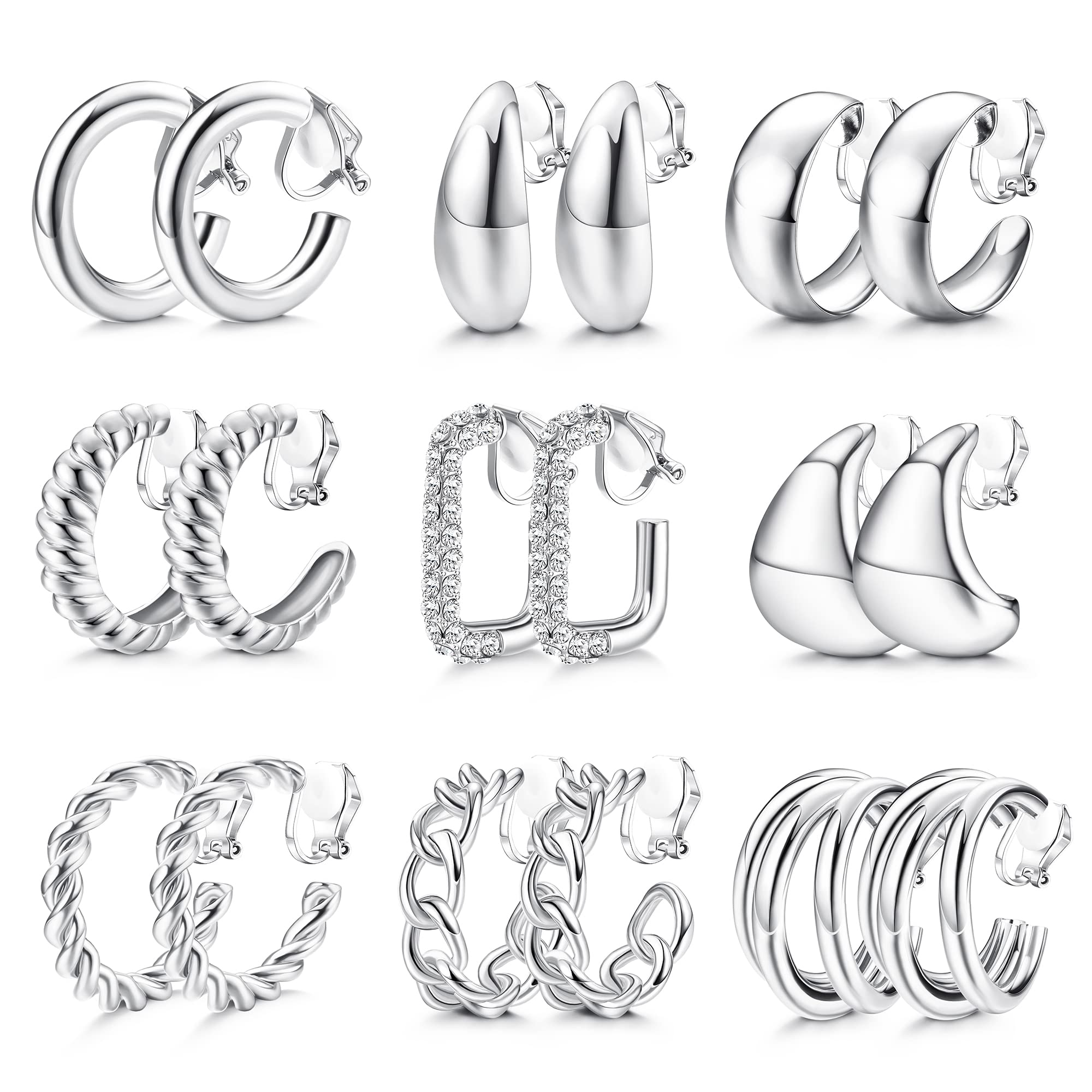 Juego de 9 pares de arete de aro chapados en oro de 14 quilates chapados en oro de 14 quilates con clip grueso, sin piercings