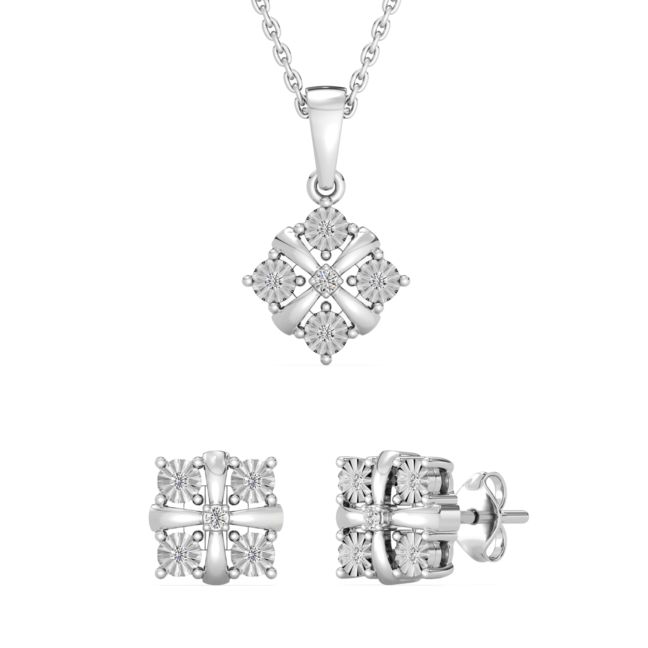Juego de aretes de tuerca con forma de diamante cultivados en laboratorio de 1/10 CTTW y collar de 45,7 cm, plata de ley, joyería elegante y ética para mujeres, caja de regalo incluida, ideal