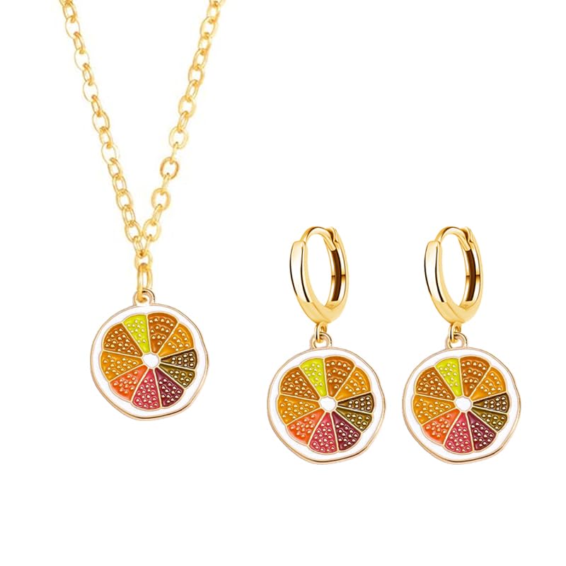 Juego de aretes y collar de frutas para mujer, divertido juego de aretes de imitación 3D de limón y plátano, naranja, melocotón, collar con colgante de frutas tropicales, joyería de verano