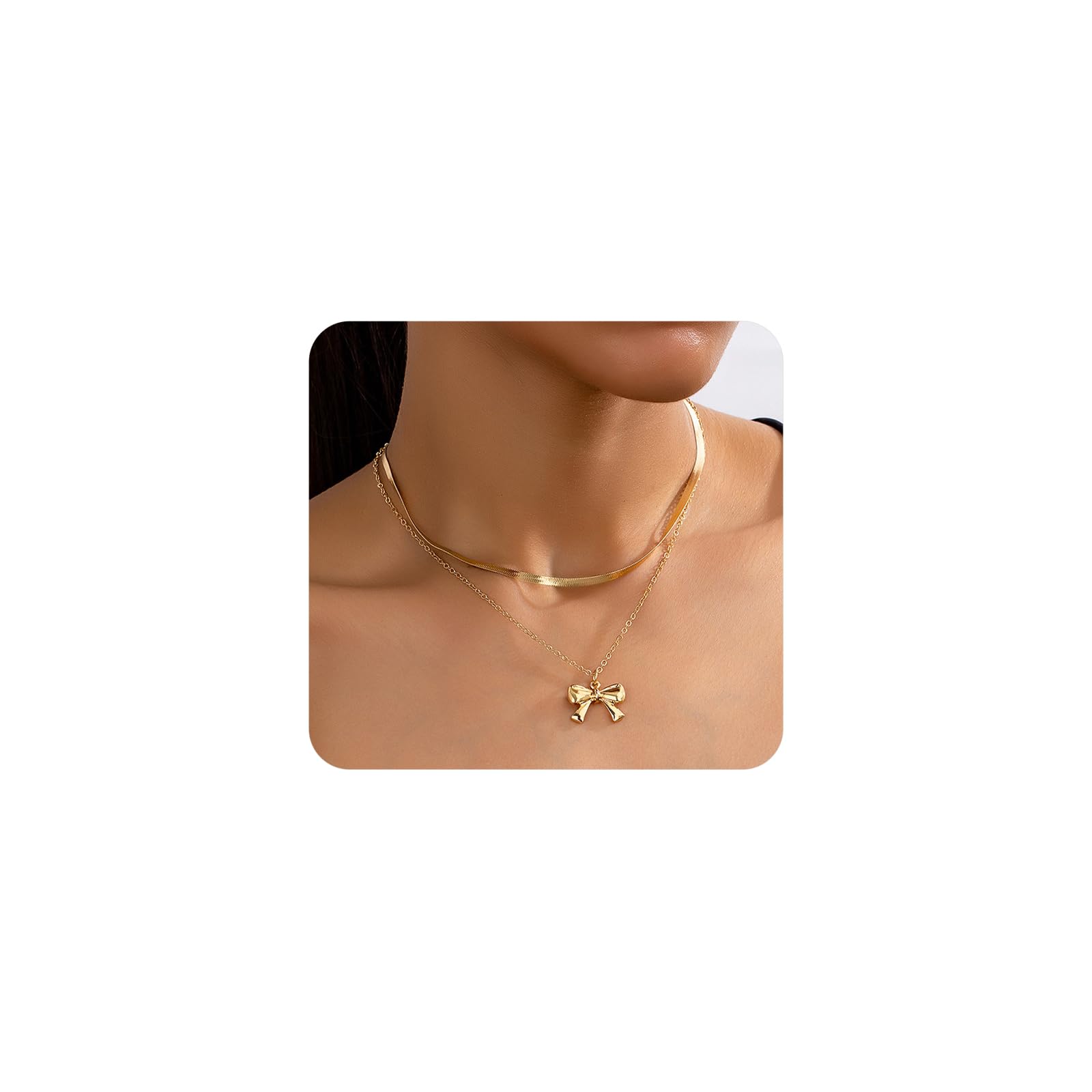 Juego de collar de lazo en capas de oro para mujer, estilo clásico, apilable, diseño de lazo, collar de lazo personalizado, accesorio de joyería de boda