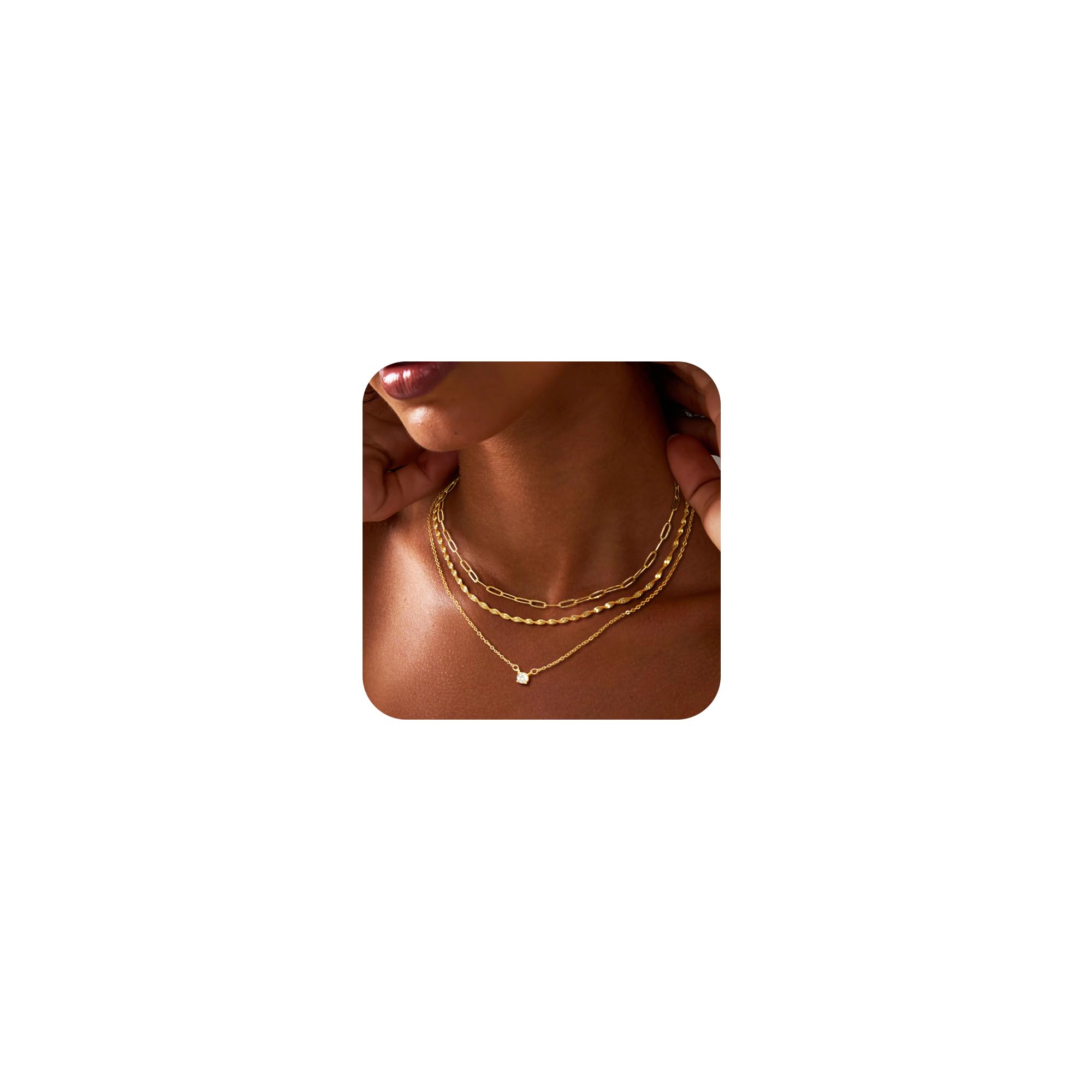 Juego de collar de oro de 14 quilates, gargantilla de múltiples capas, delicado collar de espiga redondo, joyería de moda para mujer