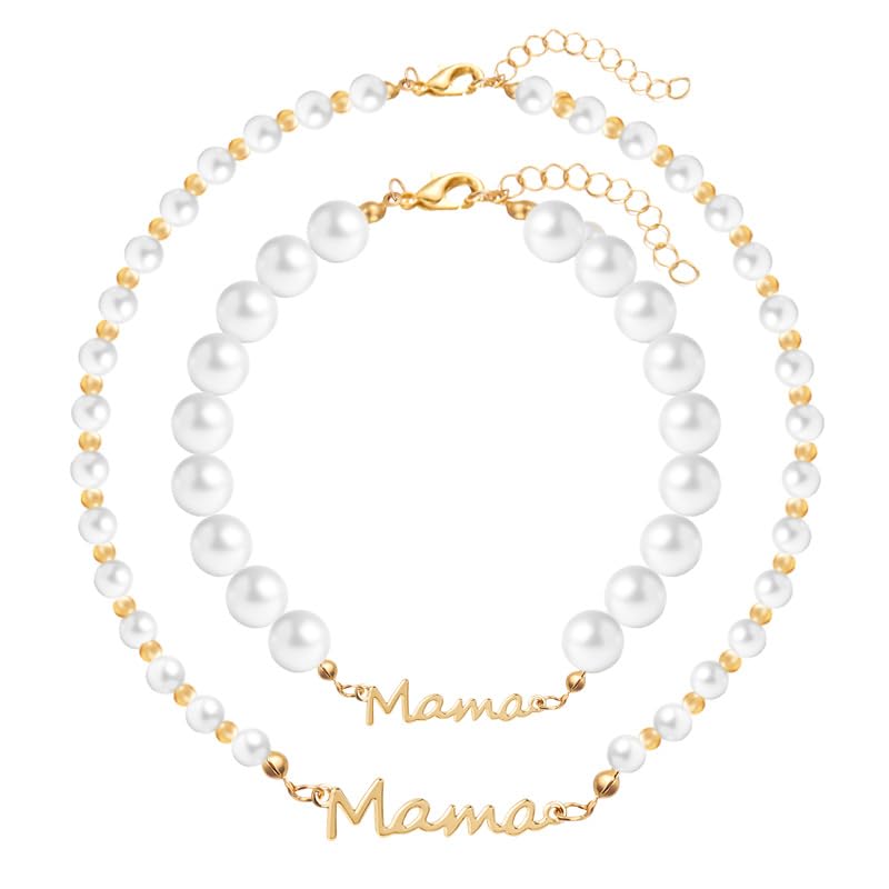 Juego de collar de perlas de mamá para madre, mamá, día de la madre, regalo para mujer, conjunto de joyas de perlas para mujer, regalo de cumpleaños para mamá, regalos de mamá para mujer, pulsera de