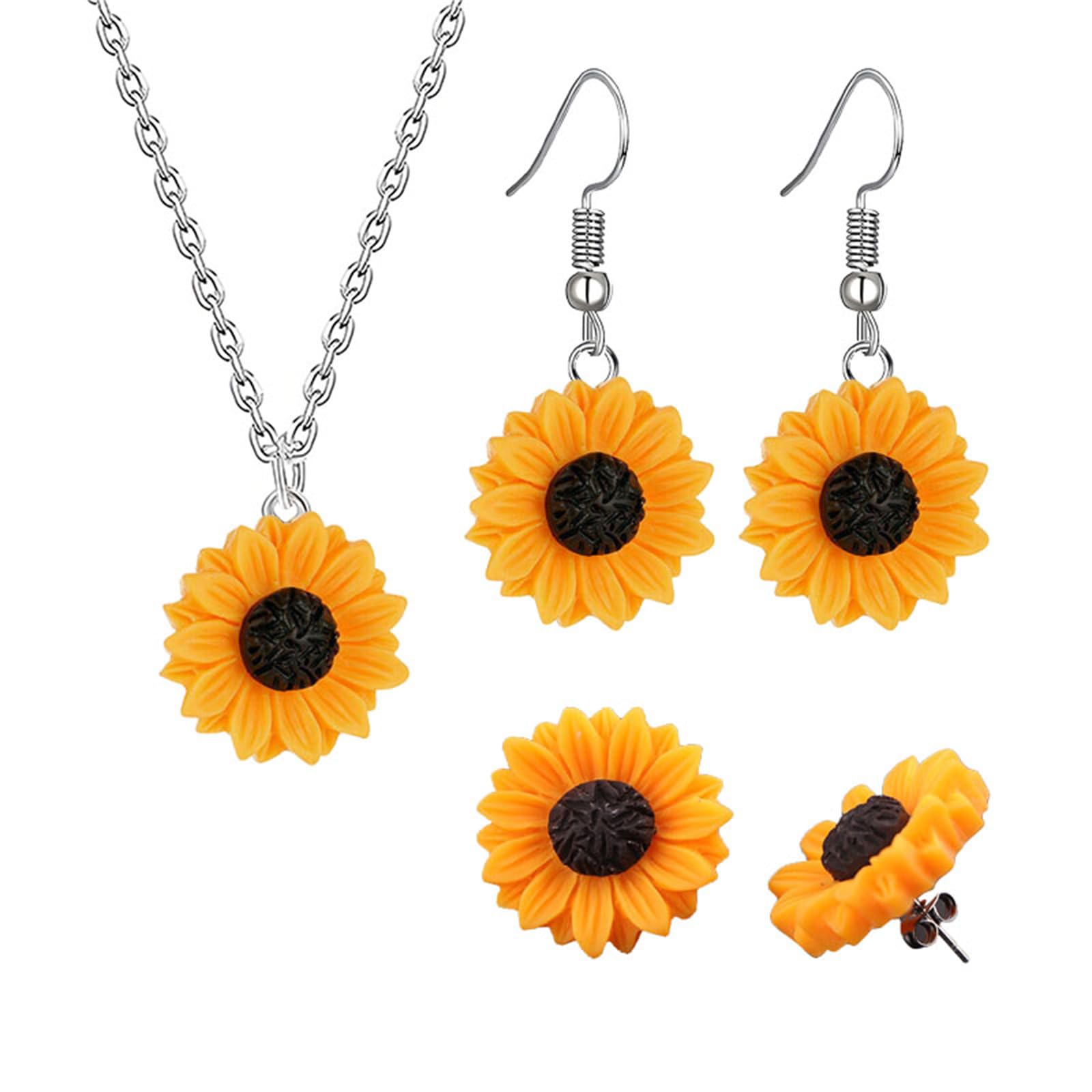 Juego de joyas de girasol para mujer para mujer, diseño bohemio de pétalos de resina y margaritas, collar de tuerca, cuerda trenzada hecha a mano, pulseras de girasol, joyería ajustable de
