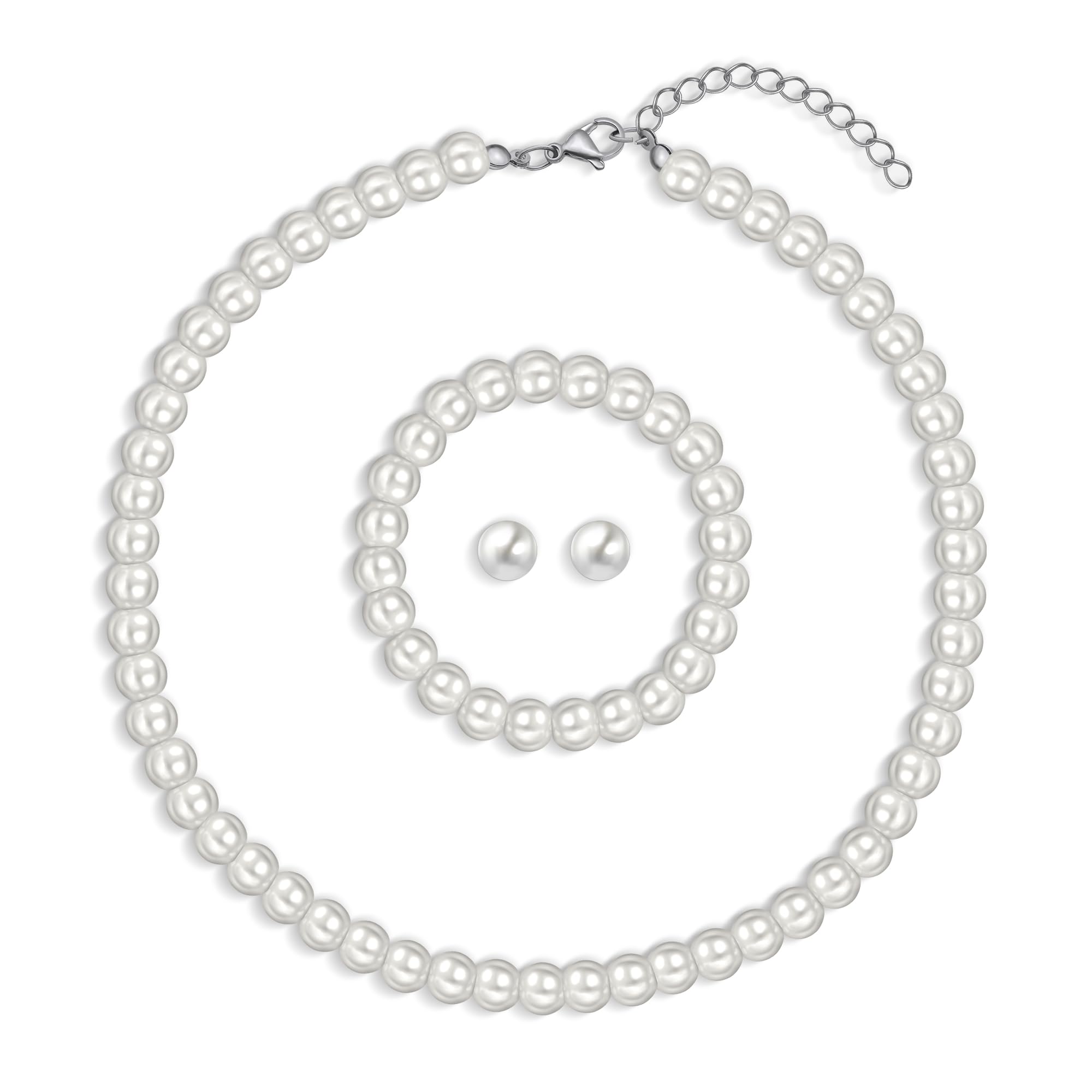 Juego de joyas de perlas para mujer, gargantilla de perlas de imitación, collar, pulsera, aretes, conjunto de joyas de novia, boda, vestidos de invitados, joyas, regalos de cumpleaños para