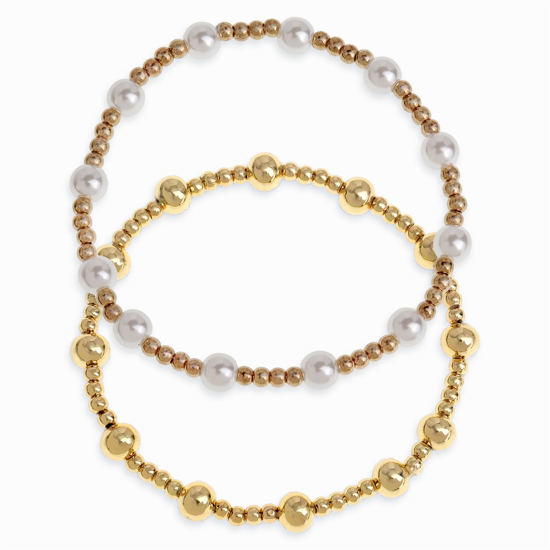 Juego de pulseras de perlas doradas con abalorio para mujer, 2 unidades, estilo bohemio, hecho a mano, apilable, ajustable, pulsera elástica para verano, playa, regalo de joyería, 17.78 cm,