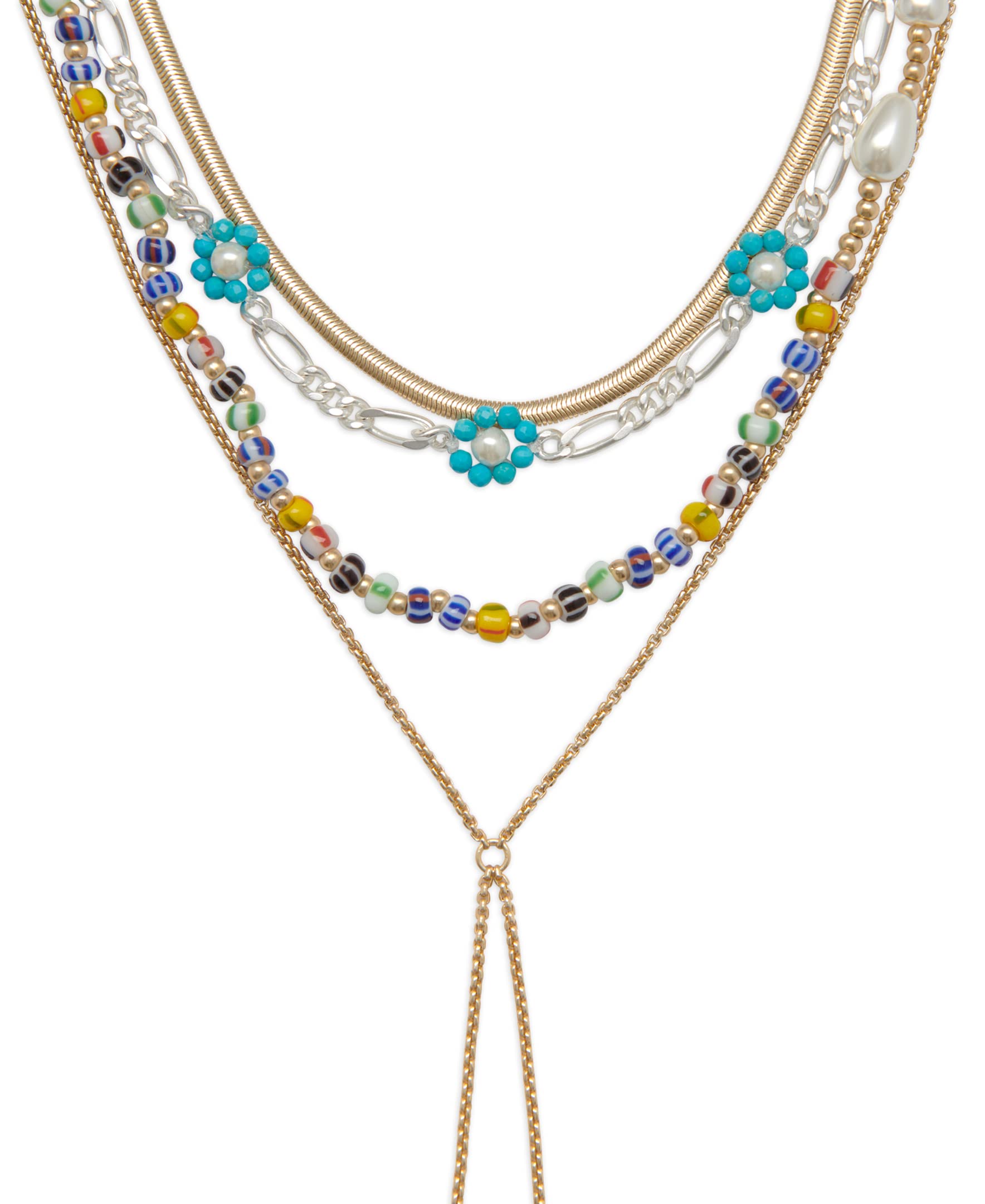 Lucky Brand Womens Flower Beaded Summer Layer Necklace