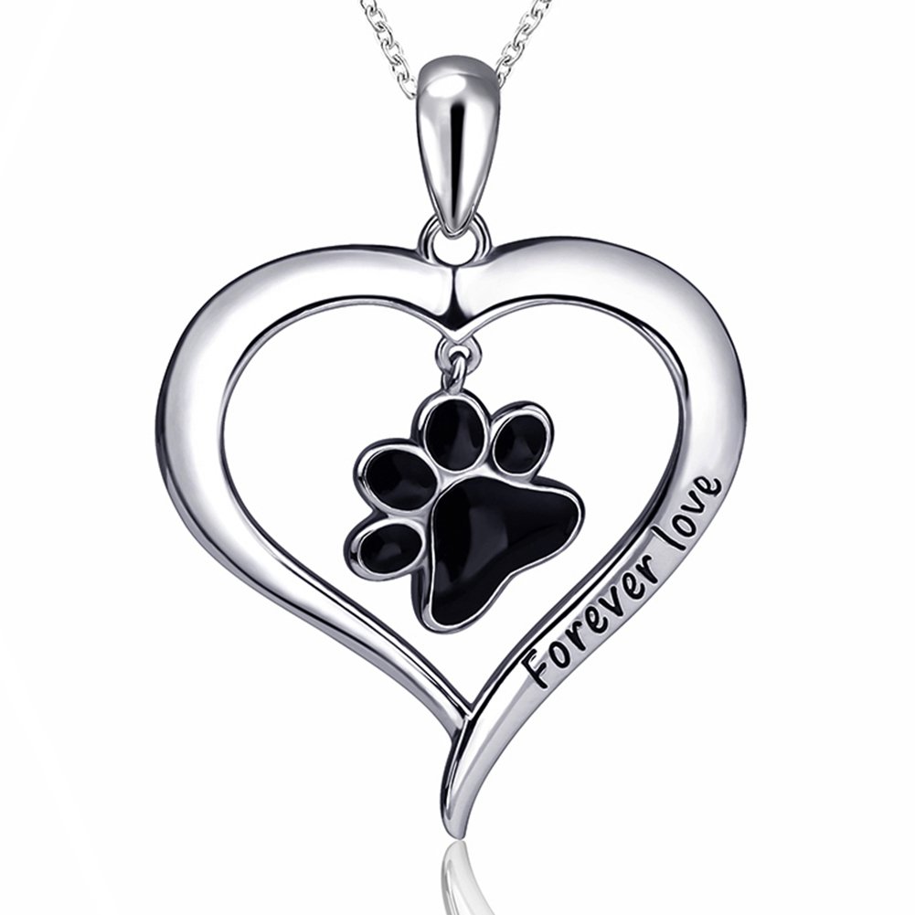 Mic Tai Paw Print Necklace Sterling Silver Cute Puppy Dog Cat Paw Pendant Necklace Forever Love Heart Paw Necklace Jewelry Gifts Women Pet Dog Cat Lovers 18-20 Inches