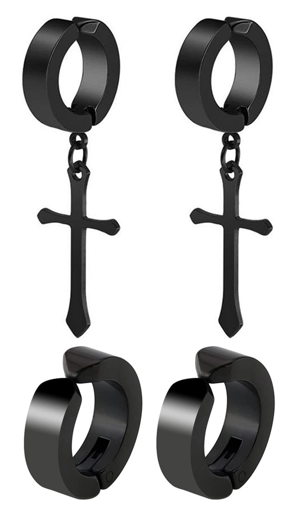 Non-pierced Earrings Set for Men Women Cross Titanium Steel Hoop Dangle Clip On Earring