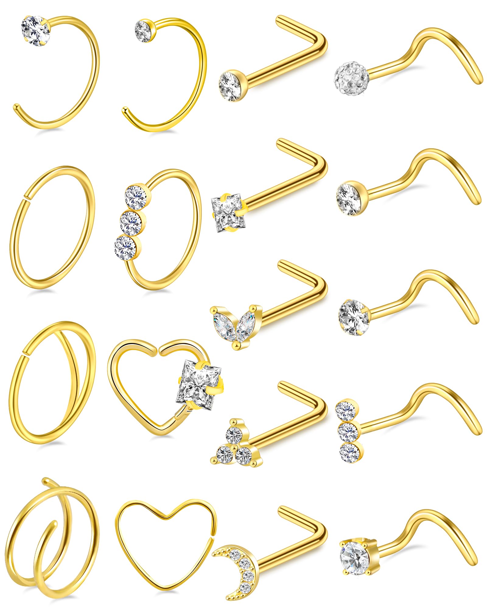 ONESING 14-21 Pcs 20G Gold Nose Rings for Women Nose Piercings Jewelry Surgical Stainless Steel Nose Rings Hoops L Shape Gold Nose Studs Double Hoop Nose Rings Hypoallergenic Nostril Nose Piercing Jewelry for Women Men
