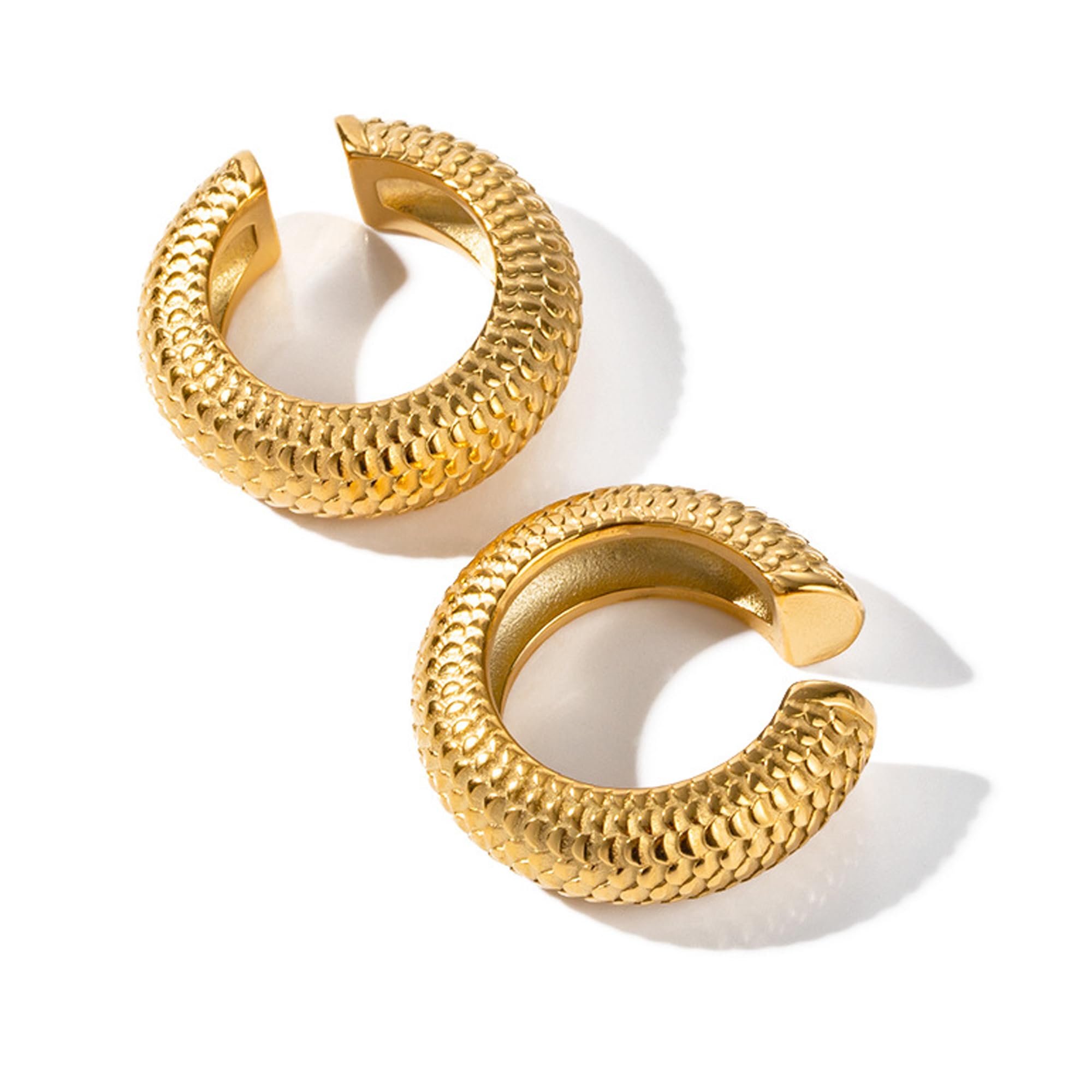 Oversize Chunky Scale Earrings 14K Gold Planted Stainless Steel Ear Cuff Round Circle Clip on Earrings for Women Clip On Cartilage non pierced