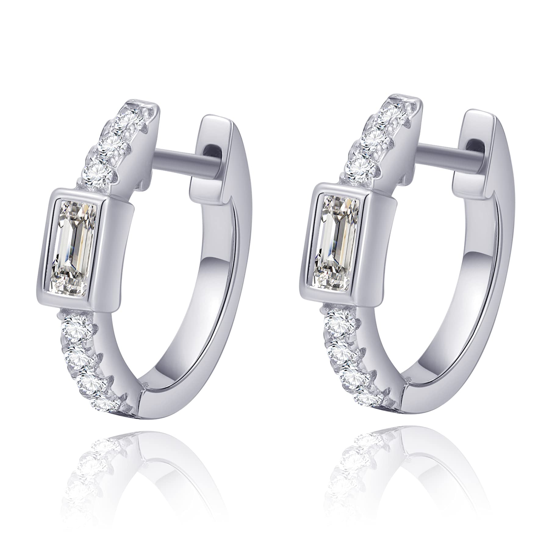 Pendiente de aro de circonita cúbica baguette de corte esmeralda | Plata de ley pequeña CZ Huggies | arete minimalistas delicados para lóbulo de oreja y cartílago