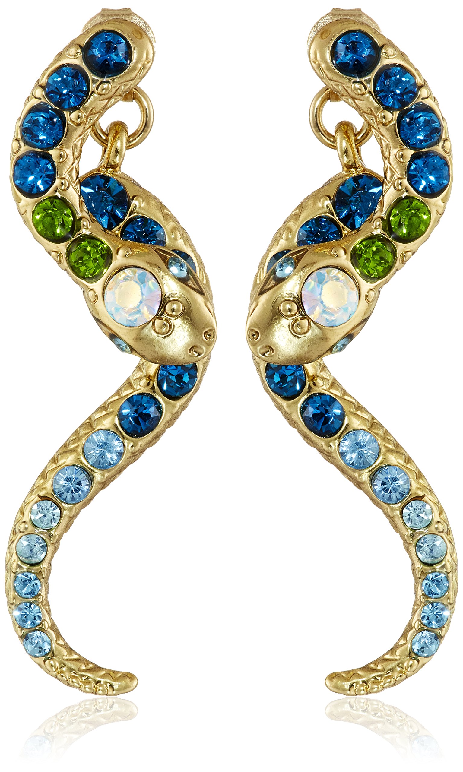 Pendientes lineales de serpiente de cristal pavé delantero y trasero, Una talla, Vidrio