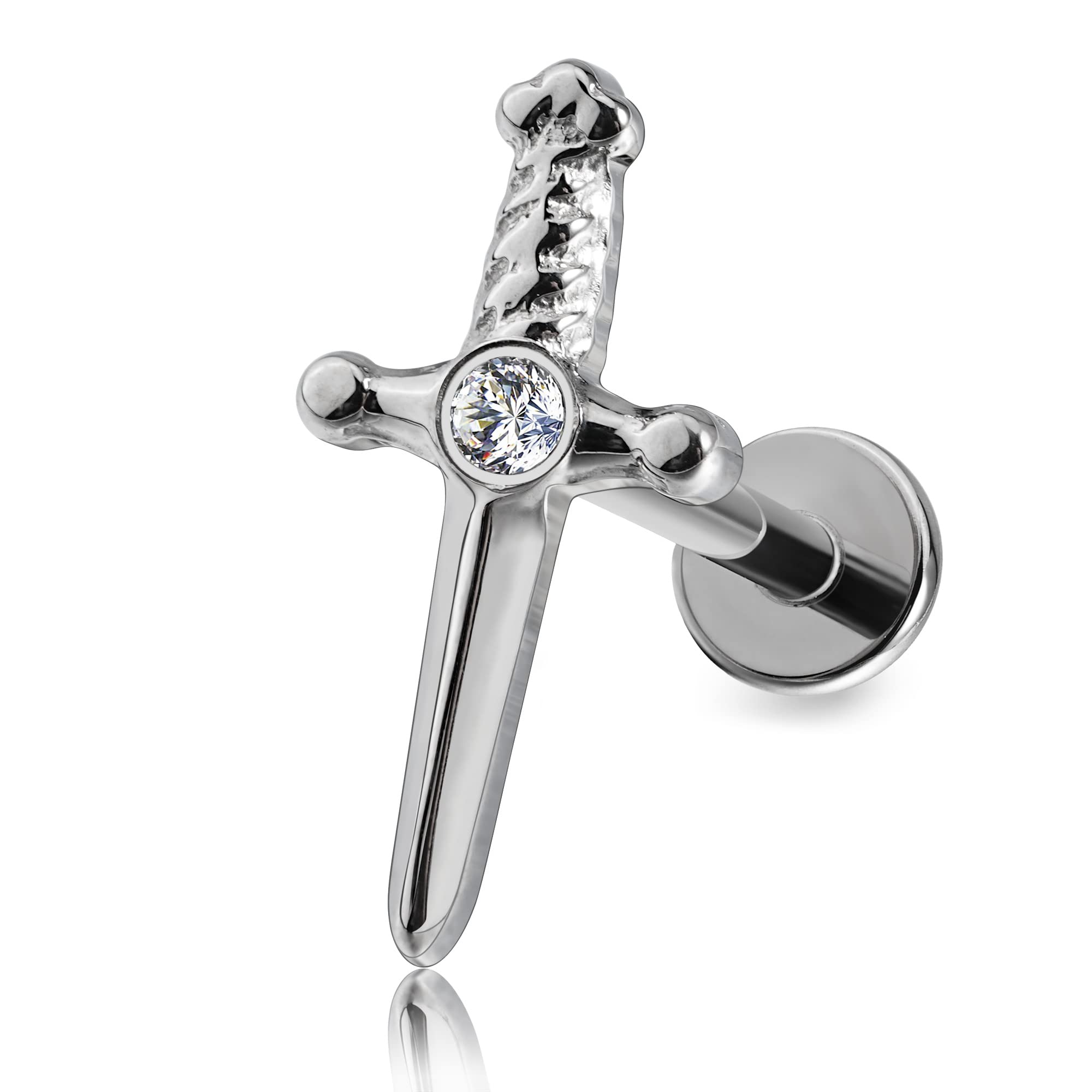 Piercing de espada de titanio ASTM F136 para caracola, tragus, hélice, 16G, 8 mm, grado implante, hipoalergénico, Titanio, Circonia cúbica