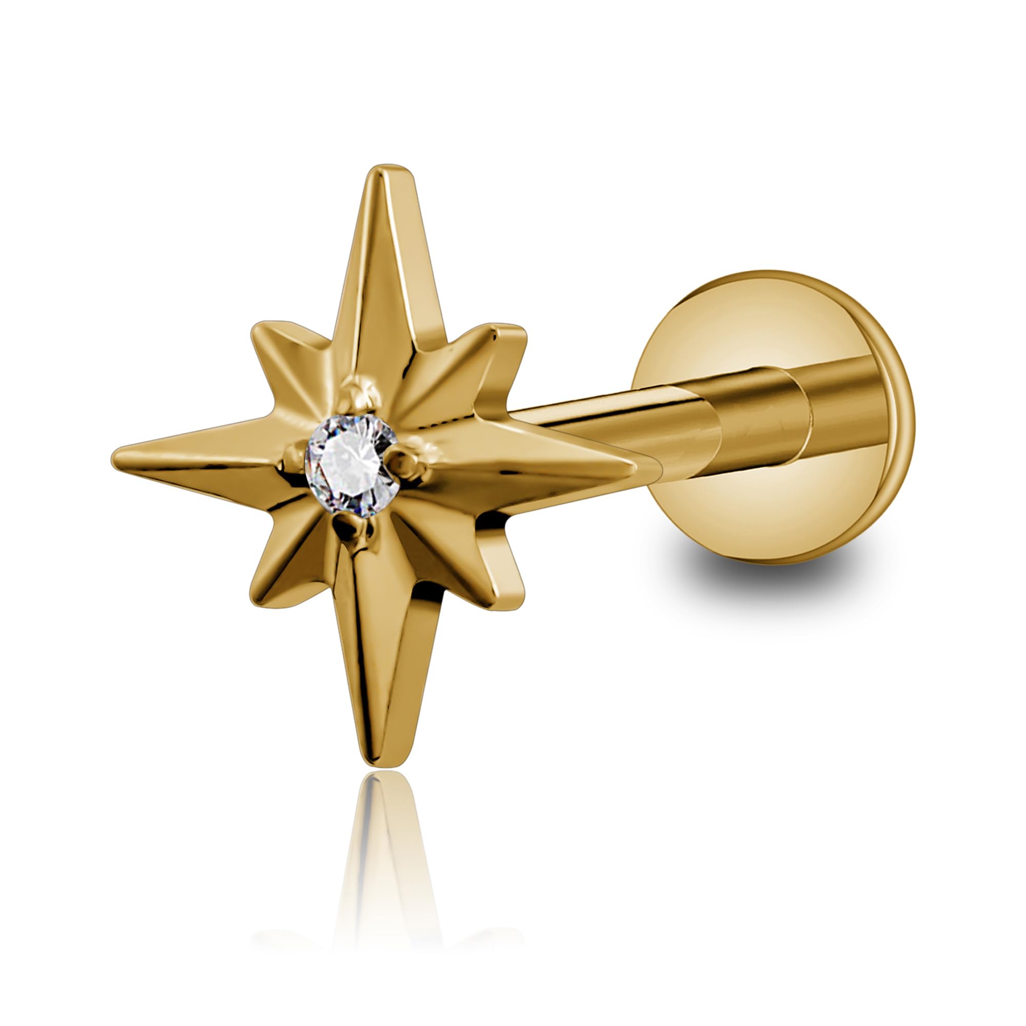 Piercing de titanio ASTM F136 con estrella del norte, 1 pieza para concha hélice, lóbulo plano de tragus 16G, 6 mm, 8 mm