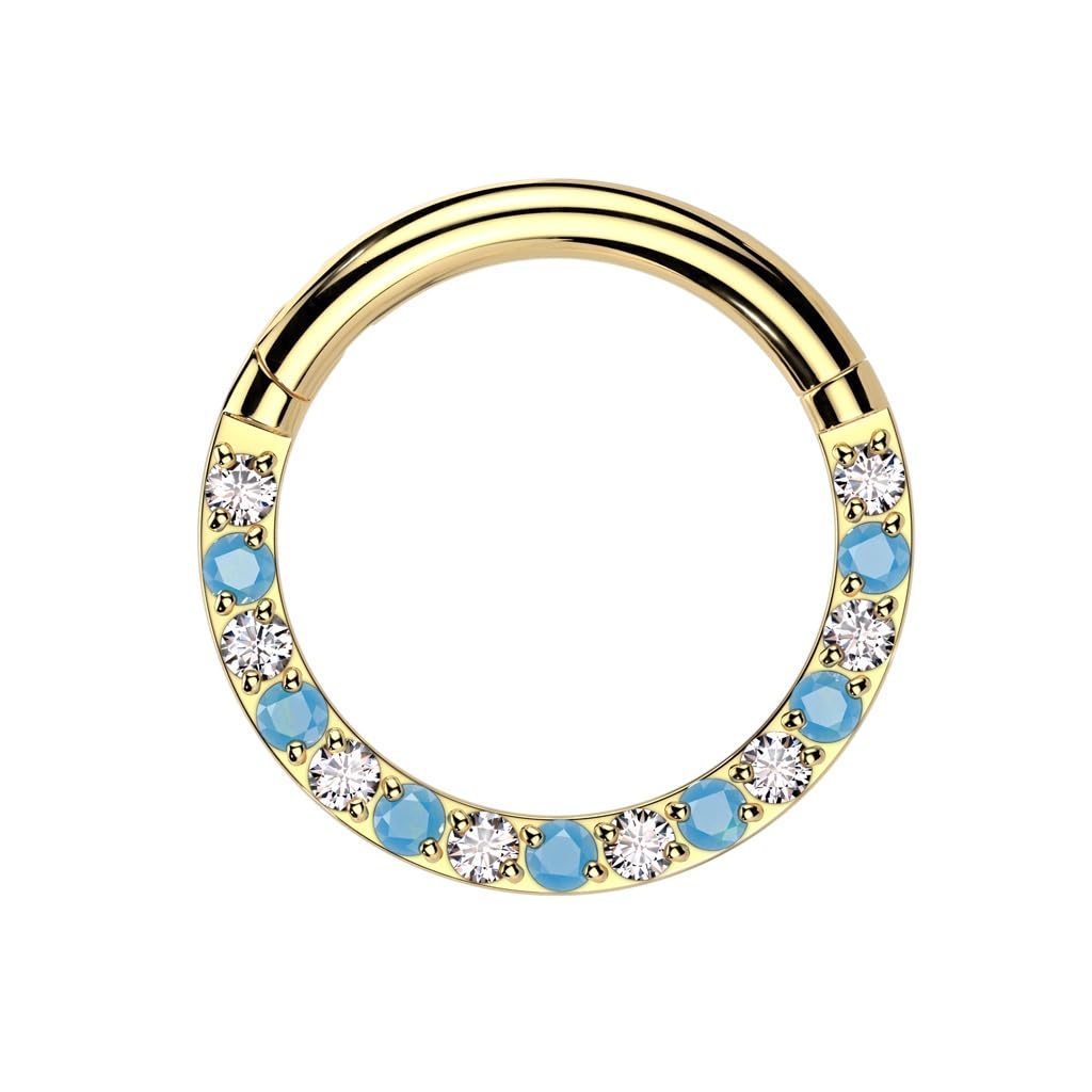 Piercing Owl 16GA ASTM F-136 grado implante de titanio CZ vidrio y sintético con forro turquesa frontal con bisagras segmento Clicker