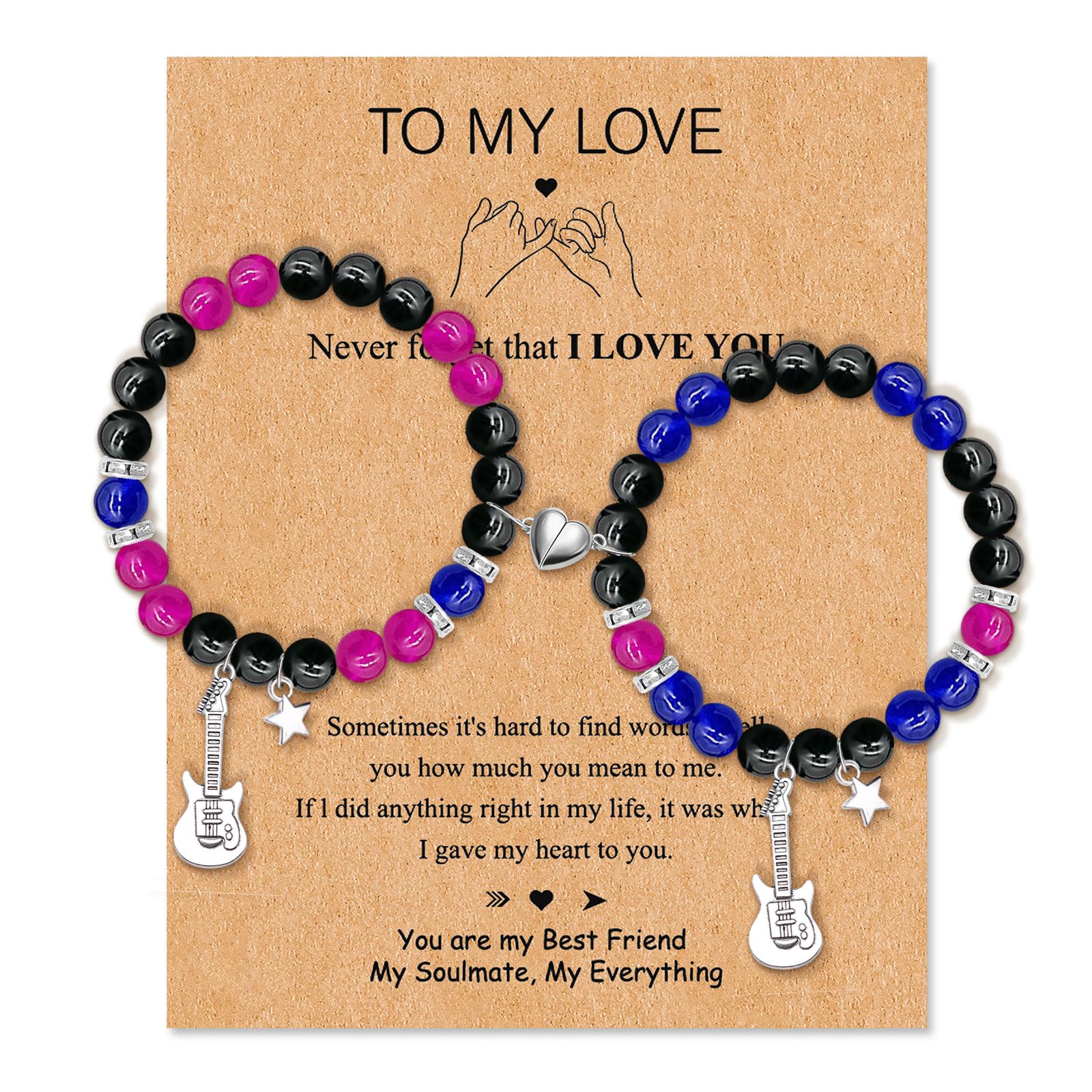 Pulsera a juego para parejas, guitarra, araña, estrella, pulseras a juego con corazón, relaciones de amistad, pulsera de promesa de larga distancia para Bf, Gf, mejores amigos, Bff, regalo de joyería