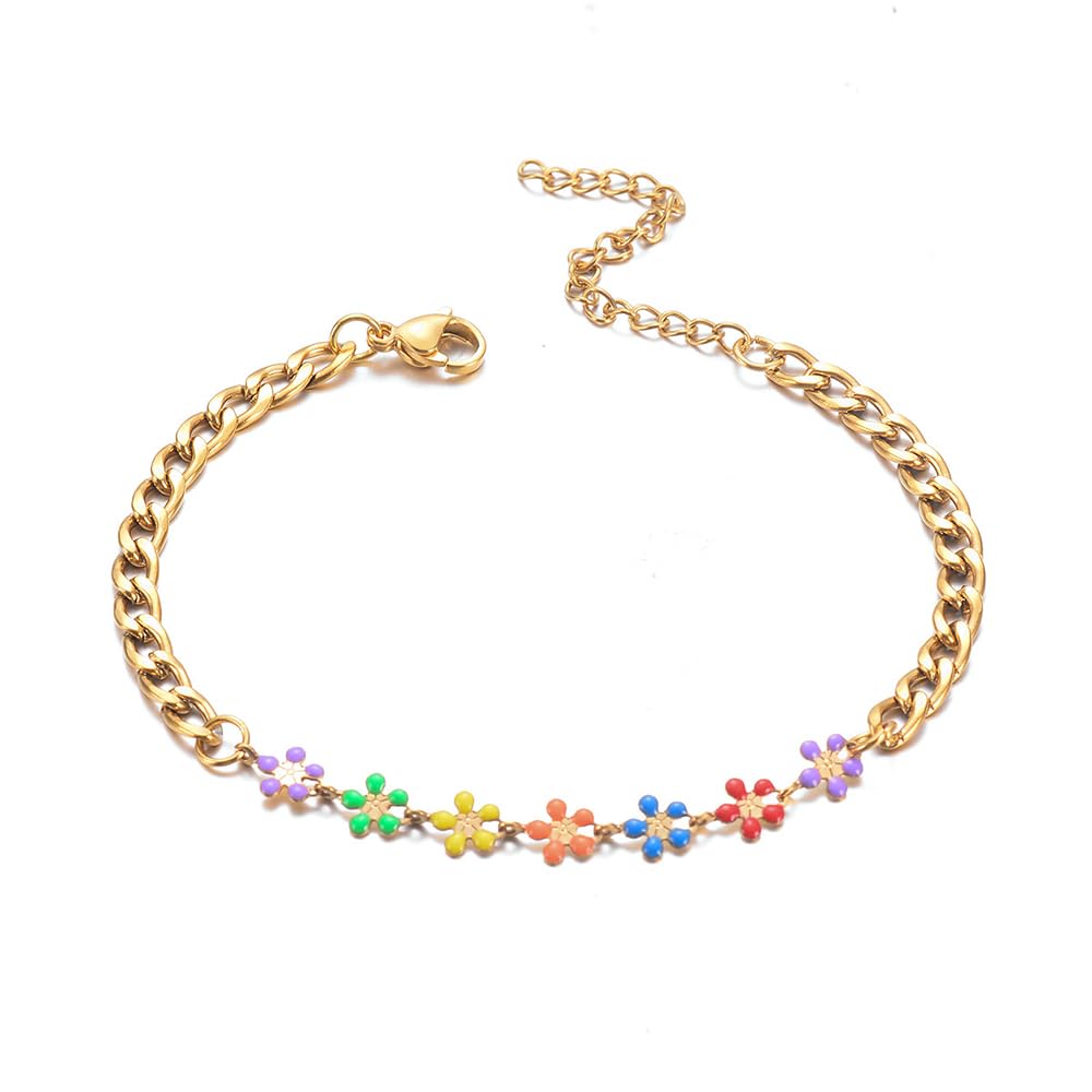 Pulsera con dije de margarita, delicada cadena de eslabones de acero inoxidable chapada en oro de 18 quilates, pulsera de flores coloridas, ajustable, esmalte, compromiso, aniversario, regalo de