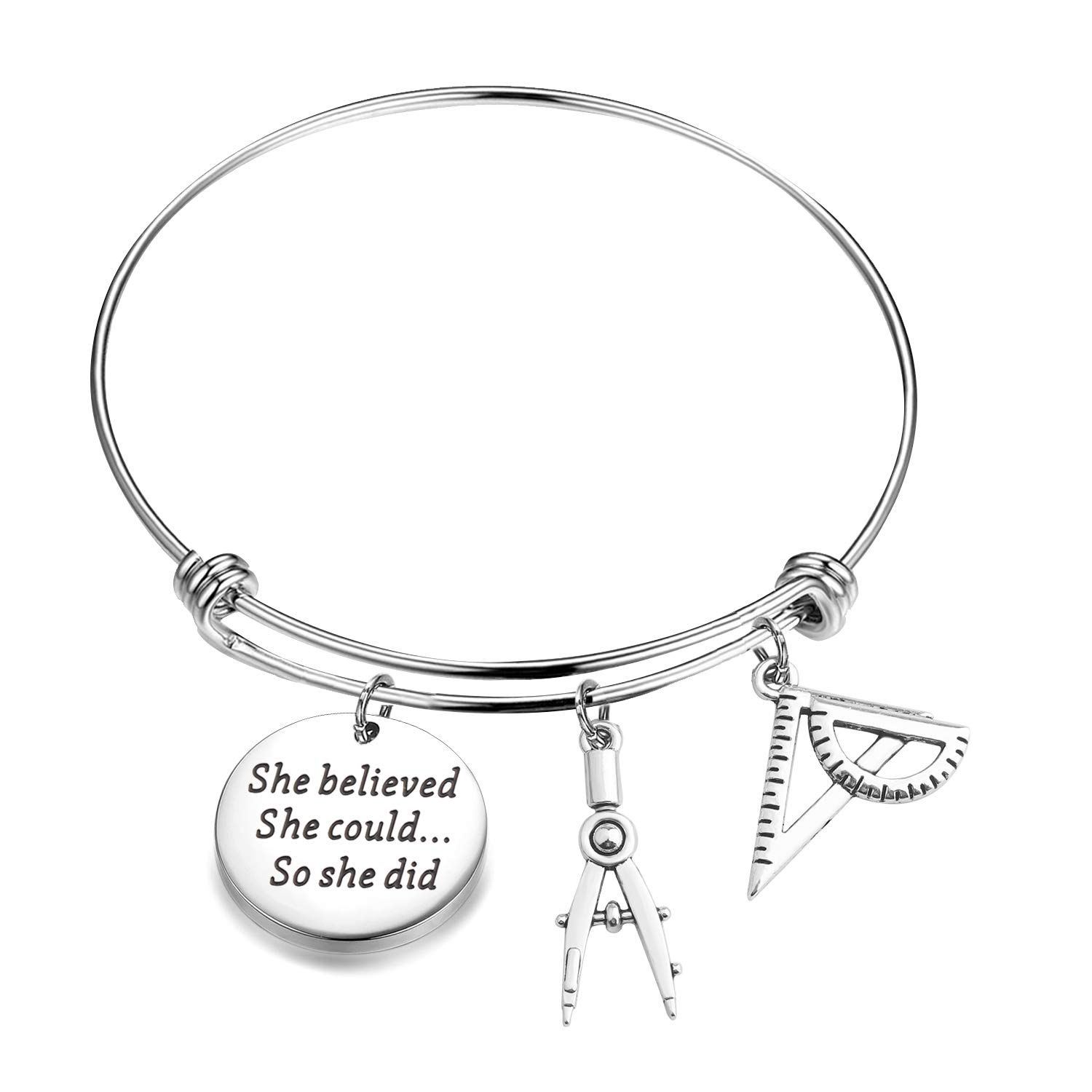 Pulsera de arquitectura para regalo con texto en inglés “She Believed She Could So She Did”