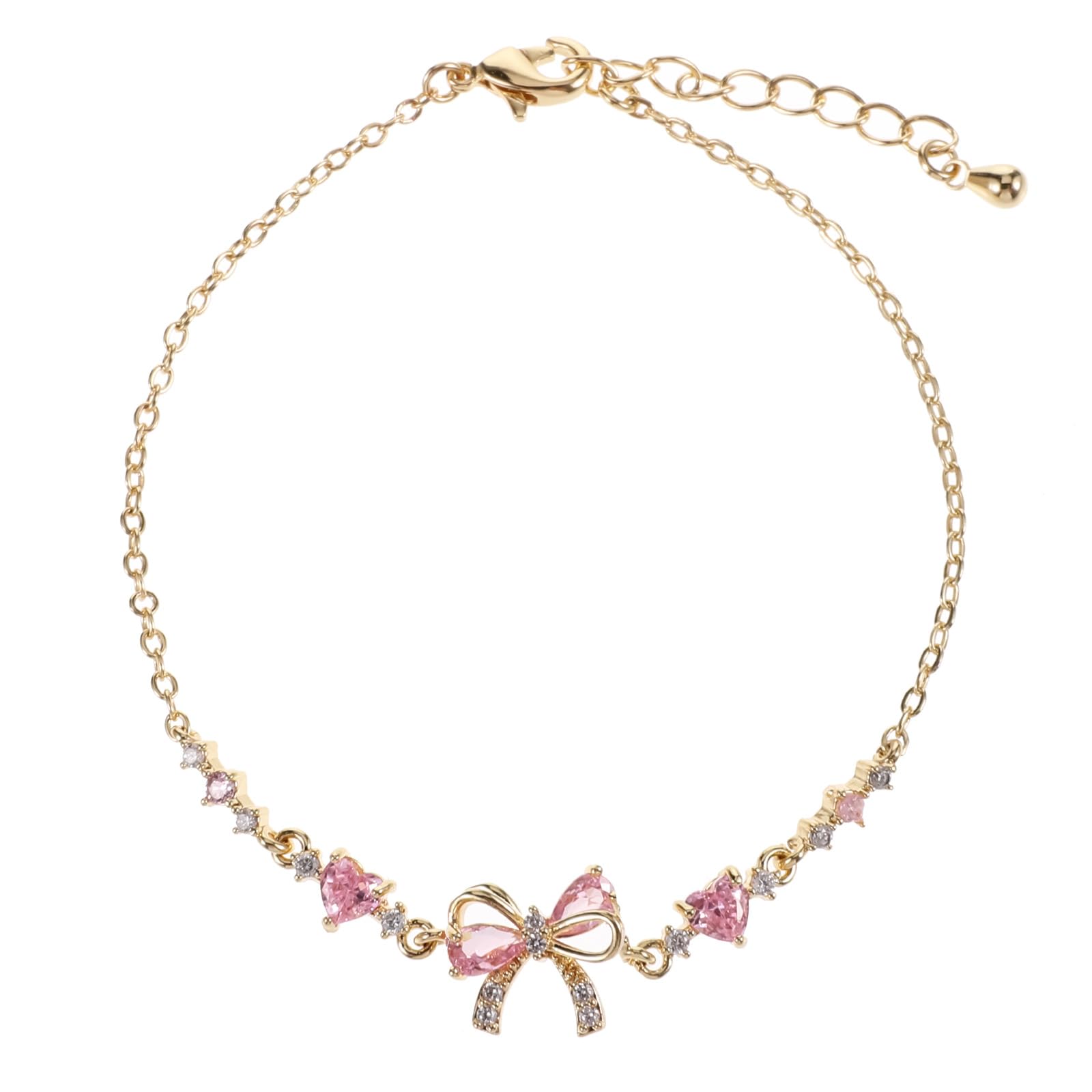 Pulsera de lazo de oro, pulseras ajustables con cinta delicada, bonita pulsera de circón, pulseras de amistad para mi mejor amigo, regalos de moda, Adjustable 8.2in-6.69in, cristal