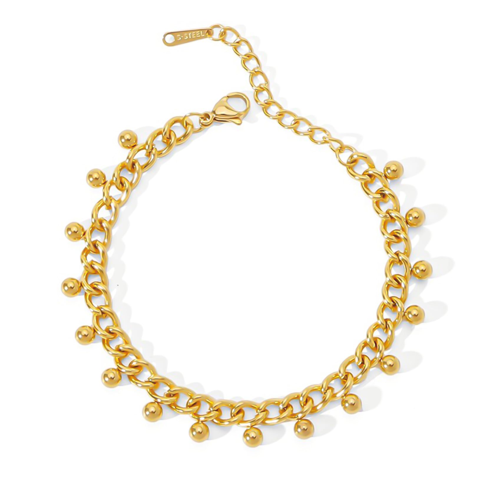 Pulsera de oro gruesa para mujer, pulsera de bola redonda, ajustable, de oro, de alta calidad, de metal pulido, regalo de joyería, Mediano, Acero inoxidable, No es una piedra preciosa