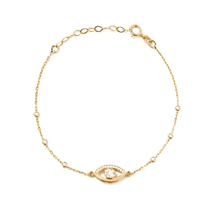 Pulsera de oro sólido de 14 quilates con circonita cúbica para mujer, pulsera de cadena delicada con dije de mal de ojo, ajustable de 6 a 7 pulgadas, regalo para cumpleaños, 7, Oro amarillo, No es una