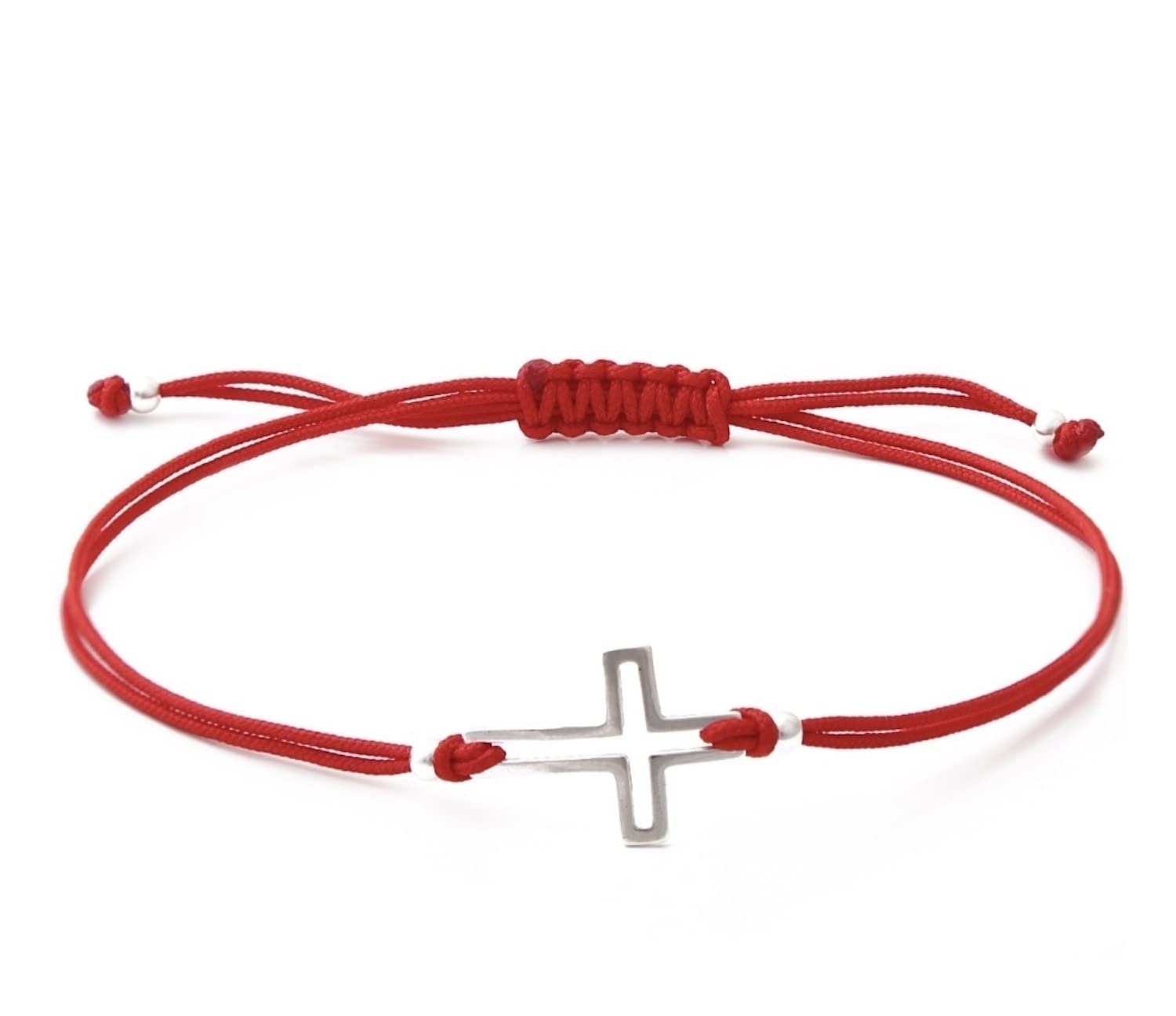 Pulsera de plata de ley 925 con cadena roja y cruz de hilo unisex, Una talla, Plata Esterlina, No es una piedra preciosa