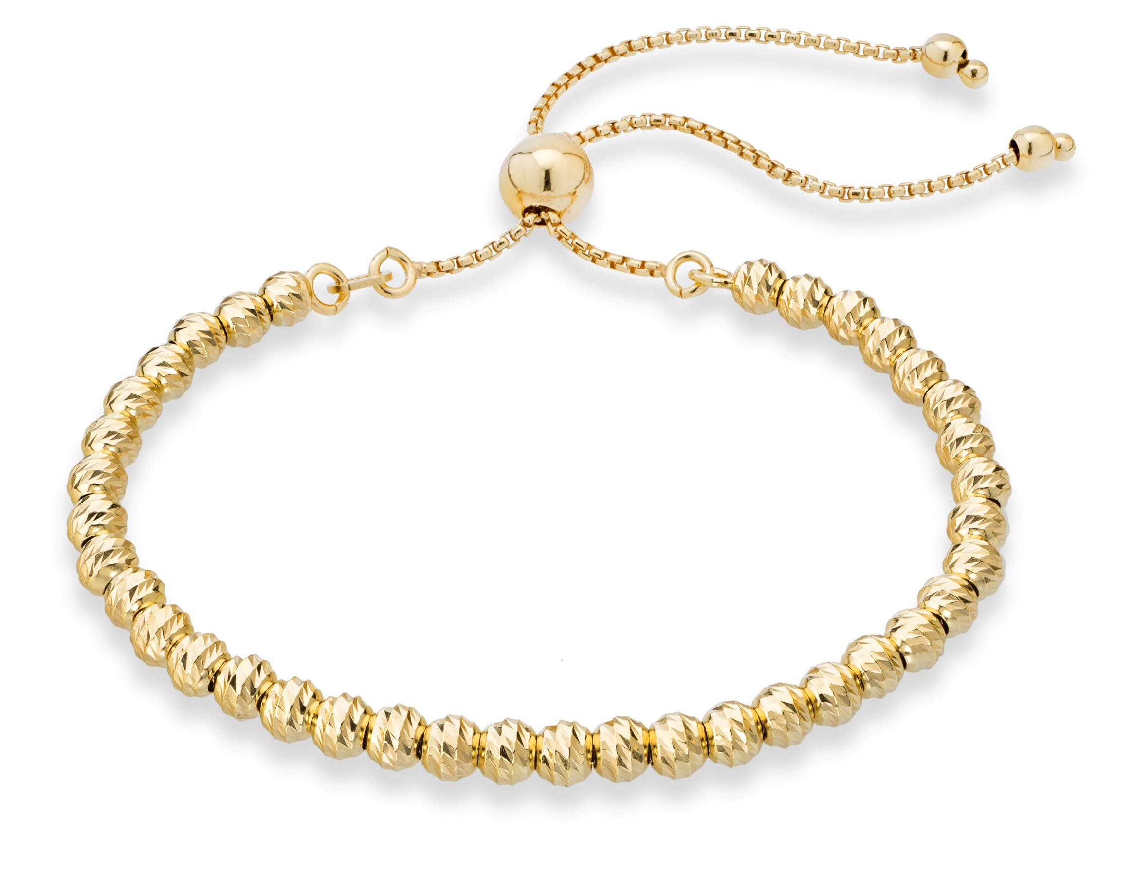 Pulsera de plata de ley 925 u oro amarillo sobre plata de ley 925 con corte de diamante ajustable para mujer, pulsera de cadena de bolas italiana hecha a mano
