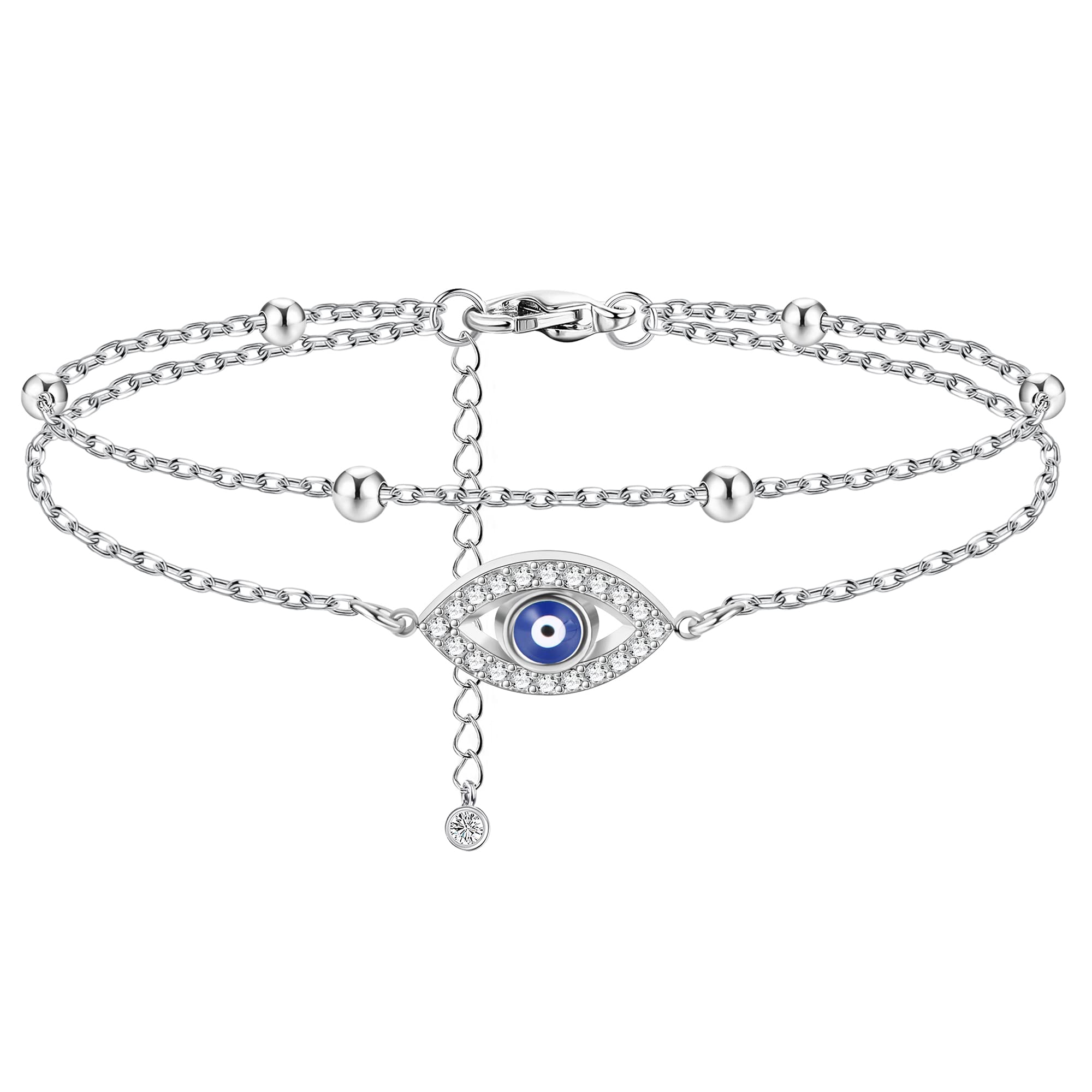 Pulsera de tobillo de acero inoxidable para mujeres y adolescentes, diseño de mariposa, con lentejuelas infinitas, cruz infinita, diseño de corazón malvado de ojo, tobilleras en capas