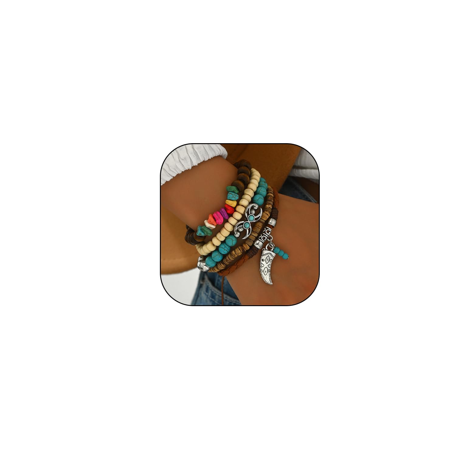 Pulsera elástica de turquesa occidental para mujer, hecha a mano, apilable, con abalorio de turquesa, estilo clásico Rodeo Western Jewelry Set Country Cowboy Outfit Accessories