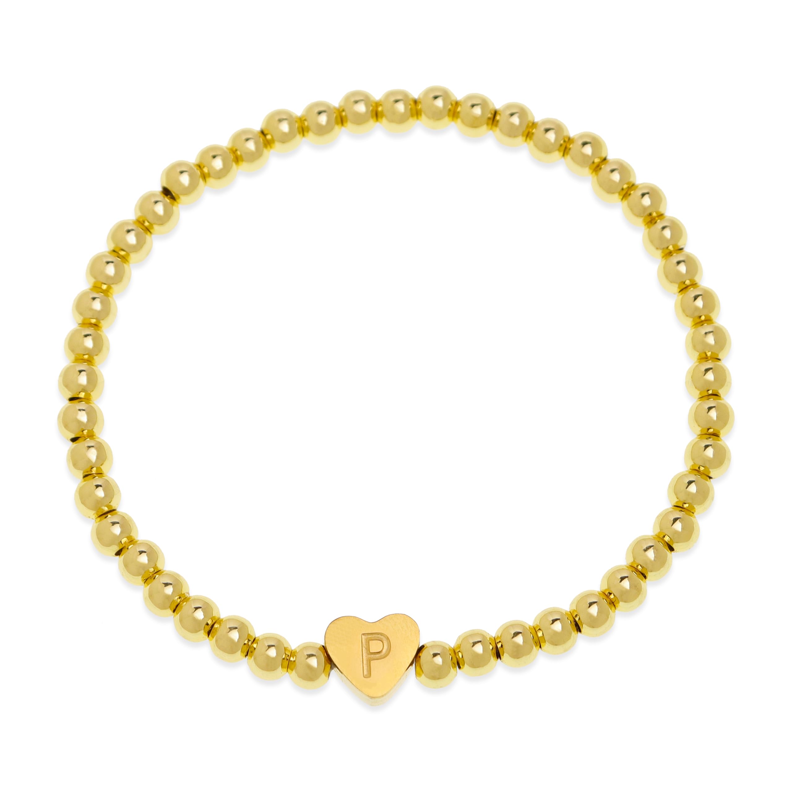 Pulseras de corazón con abalorio doradas con inicial para mujer, delicadas, bohemias, hechas a mano, apilables, elásticas, para regalo de joyería, 6″-11″, Latón, No es una piedra preciosa