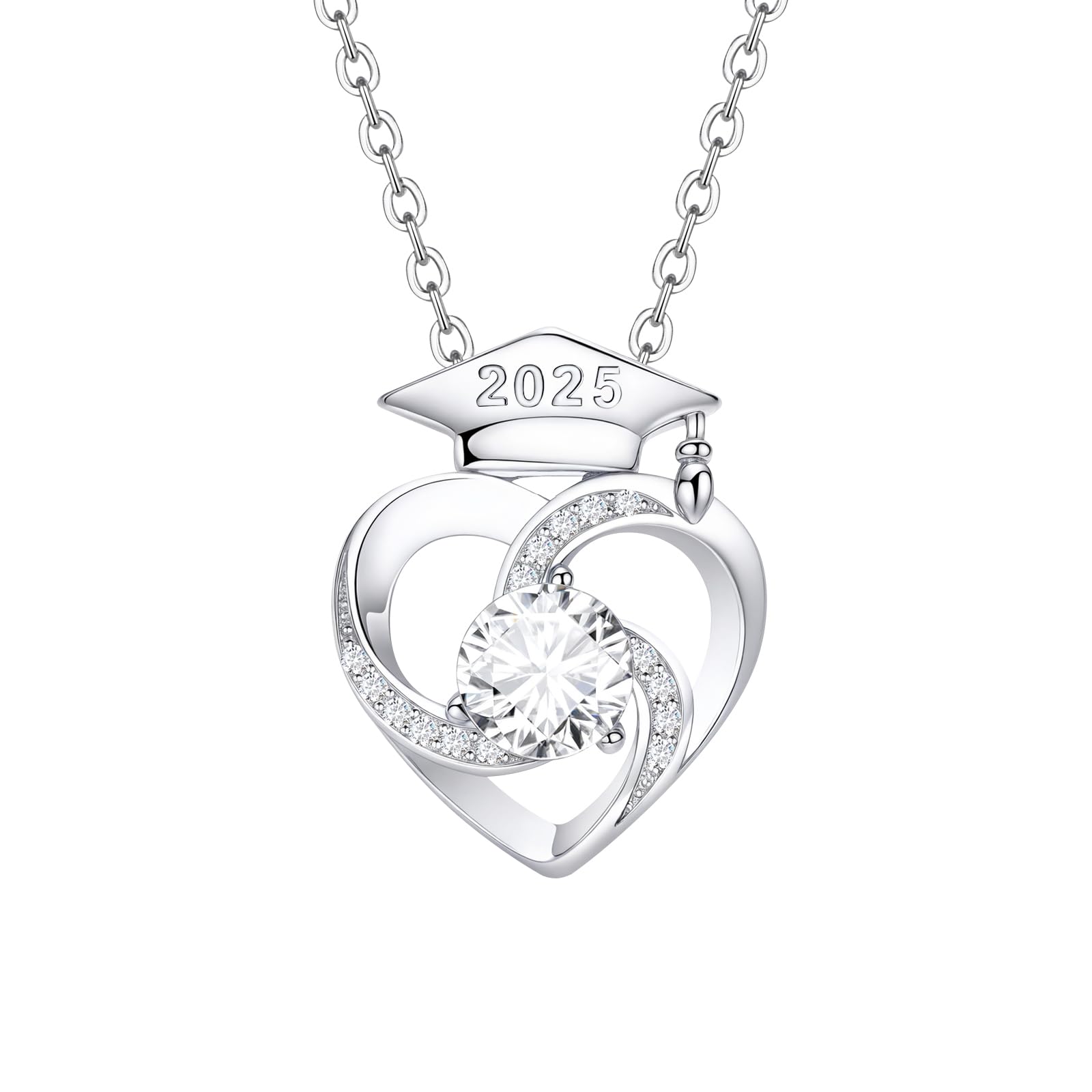 Regalos de graduación para ella 2025, chapado en plata/oro de 14 quilates, collar de corazón de graduación de la clase de 2025, regalos de graduación de la escuela secundaria para sus amigas y