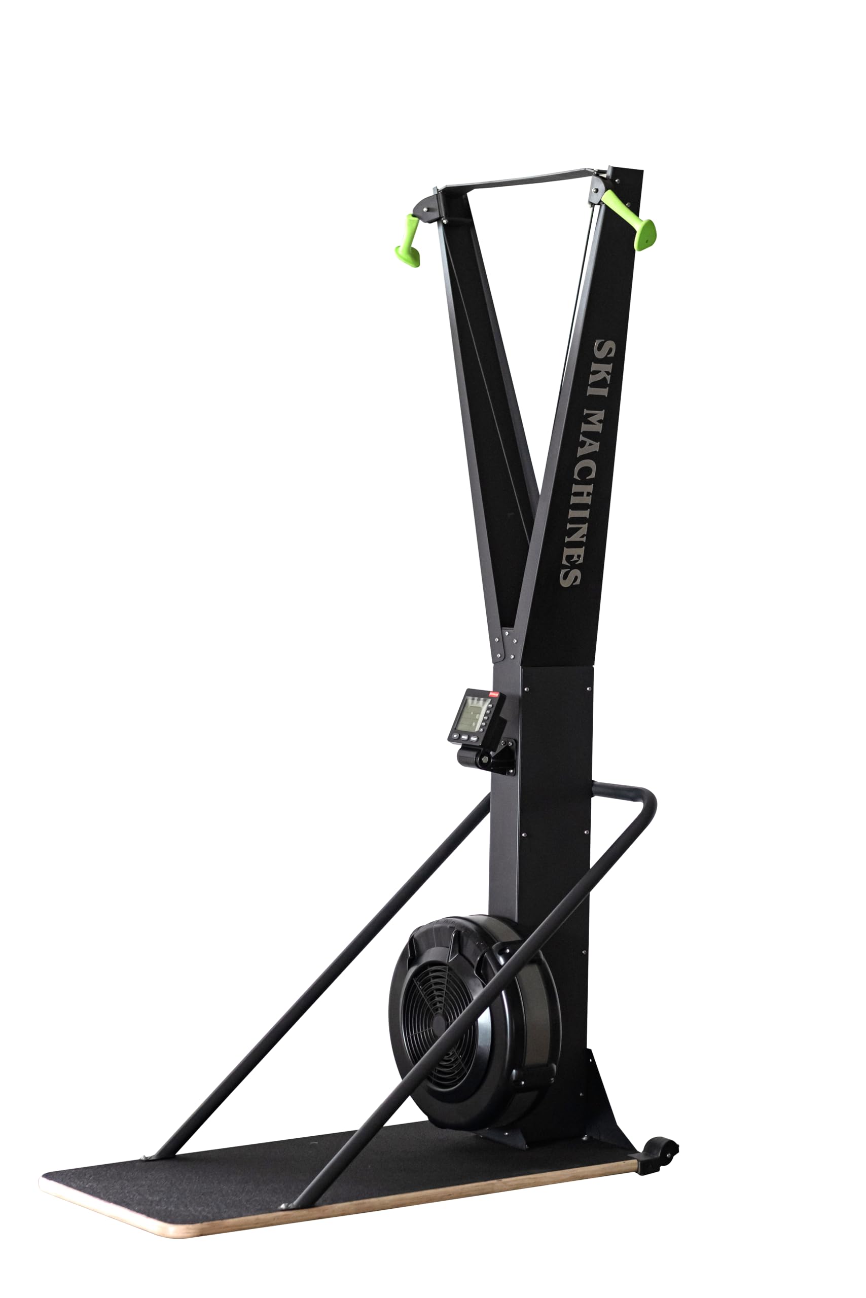 Remador de pie Ski Machine simulador de ski Color Negro de Acero con Monitor para Ajustar la Fuerza, Resistencia, Velocidad poleas Amarillas dealta Resistencia Ajustables, Protector Antideslizante
