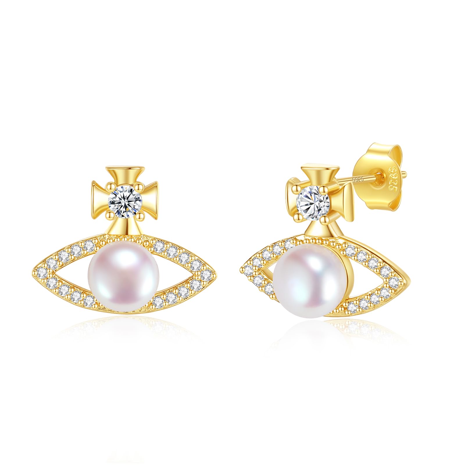 Saturn Planet – arete de perlas cultivadas de agua dulce, plata de ley 925 con circonita cúbica 5A, aretes de tuerca estéticos hipoalergénicos, regalos de joyería para mujeres, oro