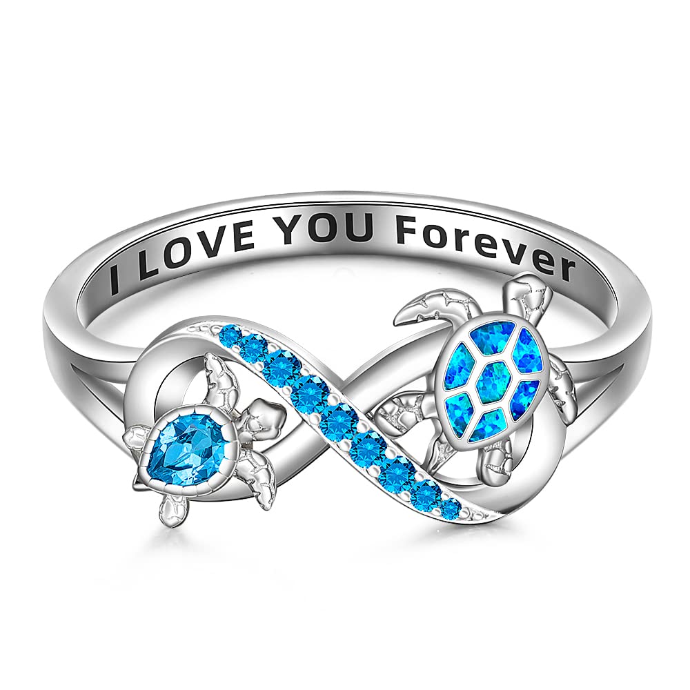Sea Turtle Ring Blue Opal 925 Turtle Rings for Women Sterling Silver Infinity I Love You Forever Cute Ocean Animal Tortoise Ring Jewelry Mother Day Christmas Gifts