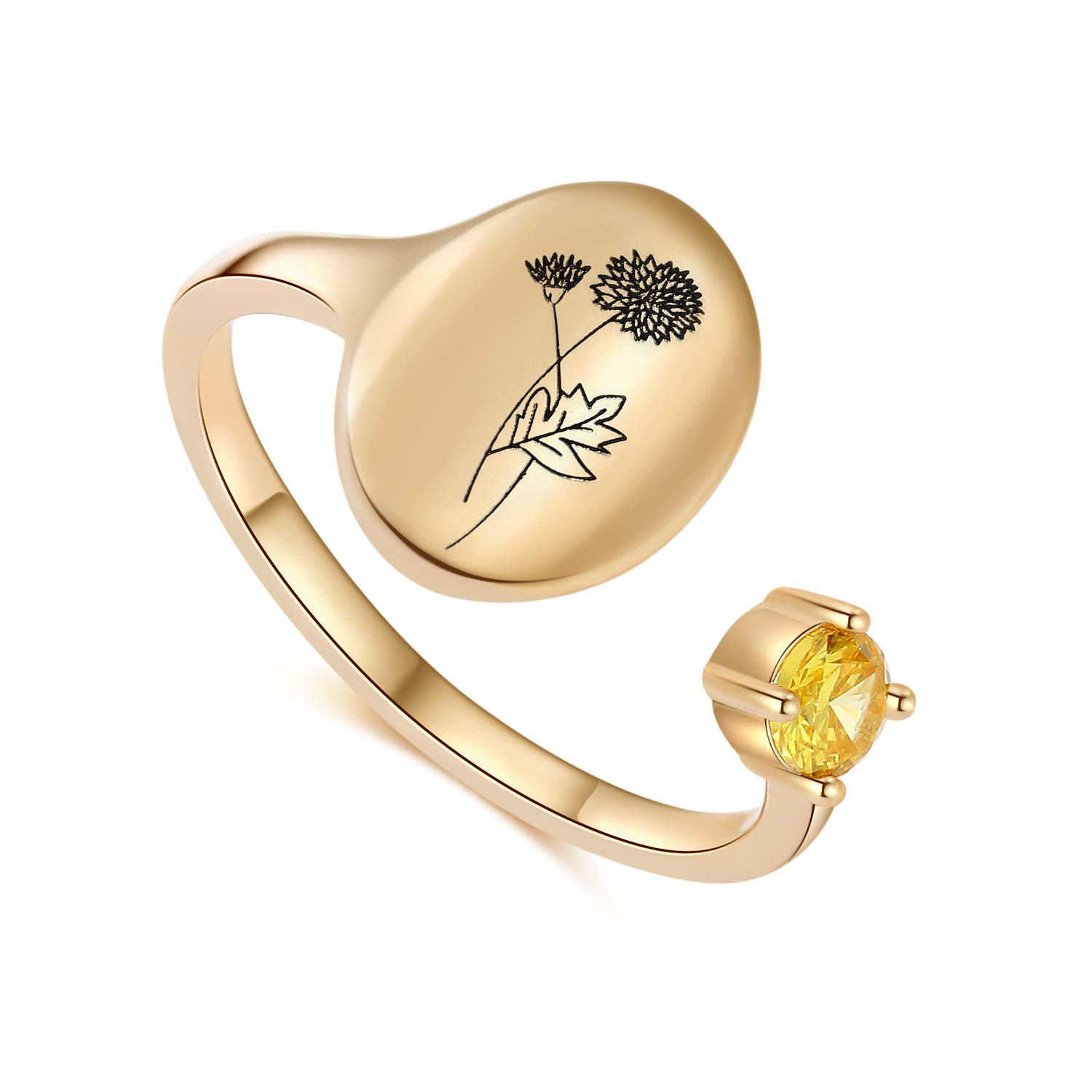 SLOONG Handmade Birth Month Flower Signet Ring 14K Gold Plated Ring Birth Stone Ring Birthday Valentine’s Christmas Gift for Mom Daughter Girlfriend Wife