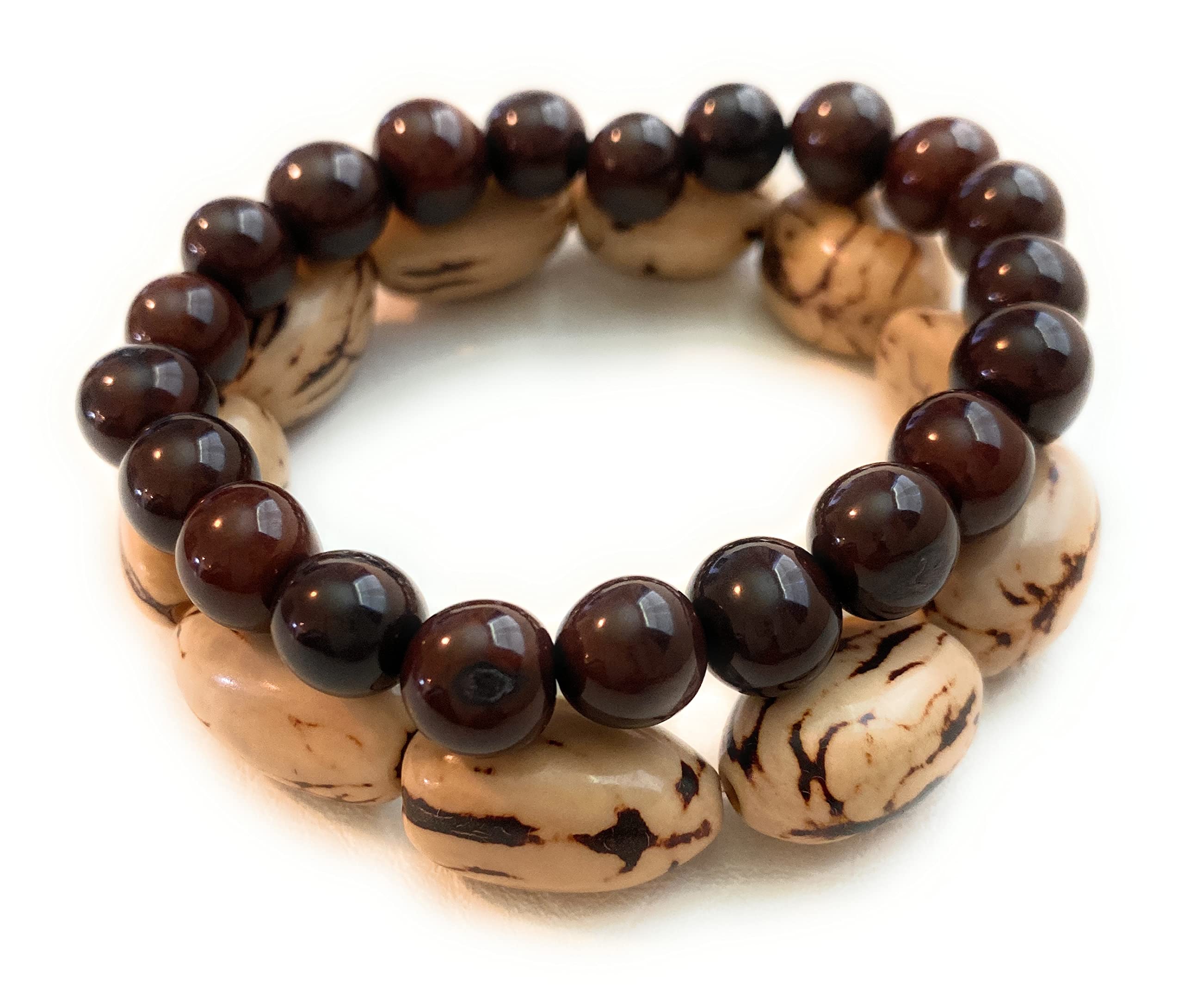 Tagua TAG428 Pulsera apilable en marrón, beige, 2 piezas de pulsera elástica Acai y Visola. Joyería ecológica de marfil vegetal ecológica, Algodón Tuerca de Tagua Algodón, no conocido