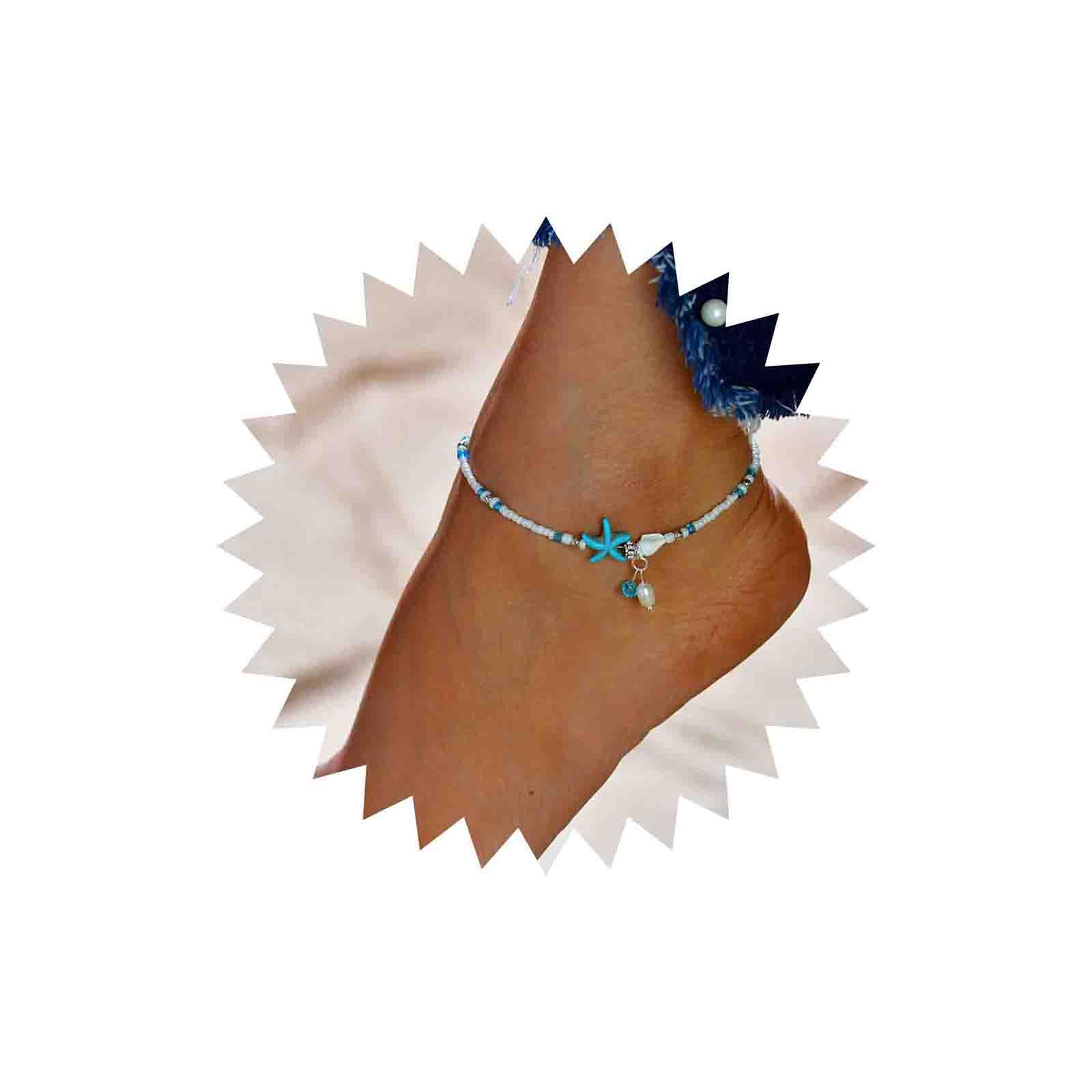 Tobillera con abalorio de estrella de mar bohemia, abalorio blancas, tobillera, pulsera de tobillo con abalorio de playa, joyería para mujer, Ajustable, Metal