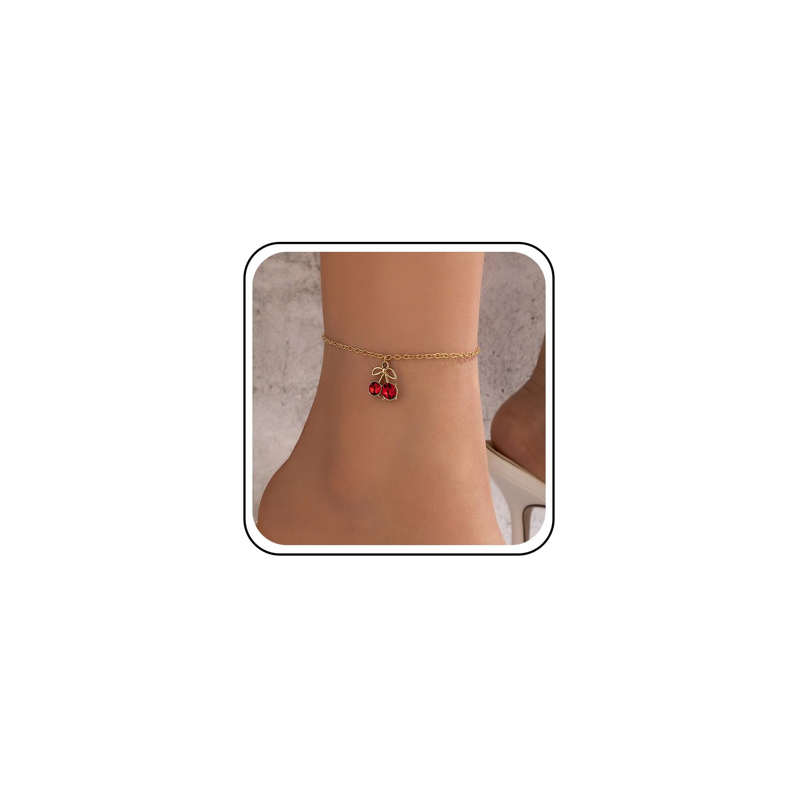 Tobillera con vidrio de rubí bohemio para tobillo de oro alegre, tobillera con piedras preciosas brillantes para mujer y niña, Large, Zinc, Sin gemas.