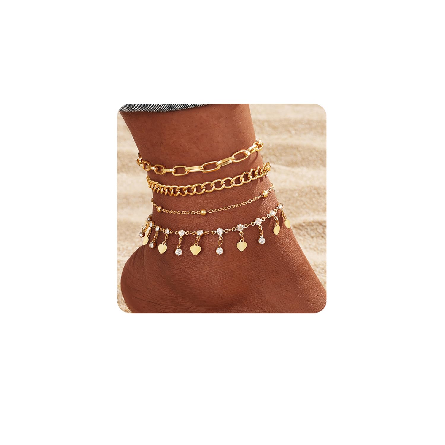 Tobilleras doradas para mujer, bañadas en oro de 14 quilates, cadena de eslabones fígaro, juego de pulseras de tobillo delicadas, impermeables, para verano, playa, Ajustable, Metal, Sin